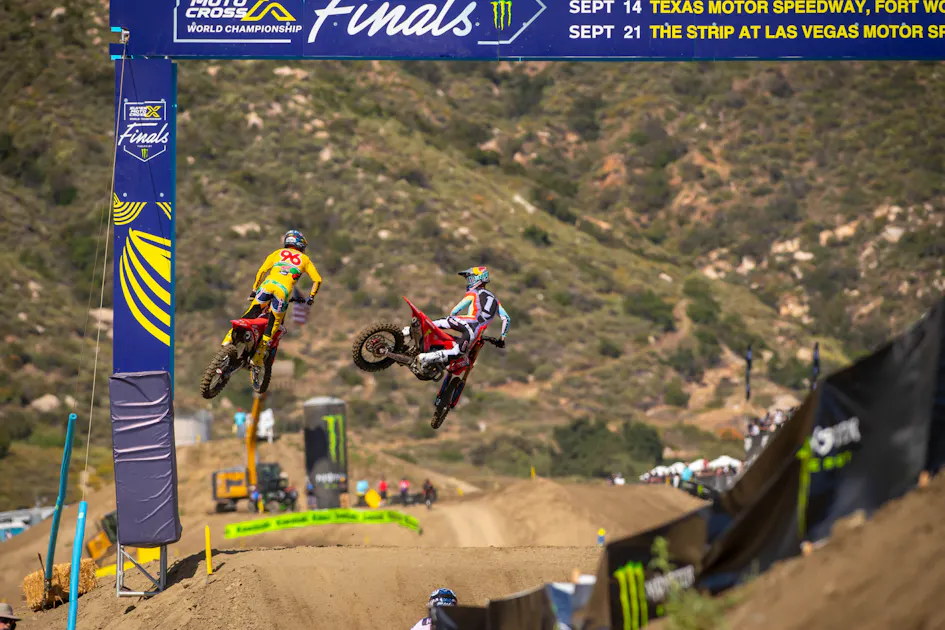 “I think when the bike is not quite working as well as you want it to be, you kind of have to put in more effort to hold it down and adjust for that,” he said. “Use that bit more strength to hold it. The first moto was the worst, I was at a bit of a limit, I couldn’t push too hard. I could kind of push hard at the start, when the bumps were smaller, but as it went on I had to try to use more flow. Glad I was able to be precise enough. We softened it for the second moto but then we ended up being over the front a little more. It’s good to get 24-0 to kind of match Ricky and James [their perfect seasons offered two more motos than Jett’s 22-0 last year], but we’ll go back to the drawing board look at some stuff and improve that, and also improve myself. I think in supercross, we’re a little heavier with our legs and we don’t move them as much because we have such stiff suspension. You’re trying to get the suspension to work more, where in outdoors you use your legs a lot more. So throughout the season I think we’ll get better and better and get my moto legs more and more.”
