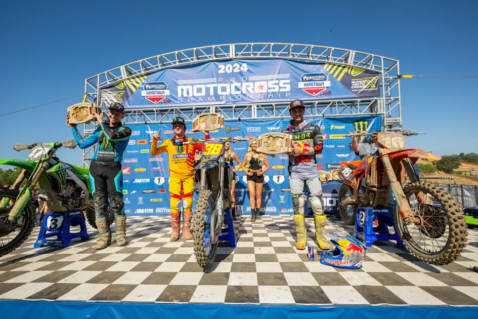 At the second round of the 2024 AMA Pro Motocross Championship, Haiden Deegan (Yamaha) finished 1-2 for his second straight overall win to start the season. The #38 has won three of the first four motos to win the season as Tom Vialle (KTM) finished 4-1 for second overall and Levi Kitchen (Kawasaki) finished 3-3 for third overall.