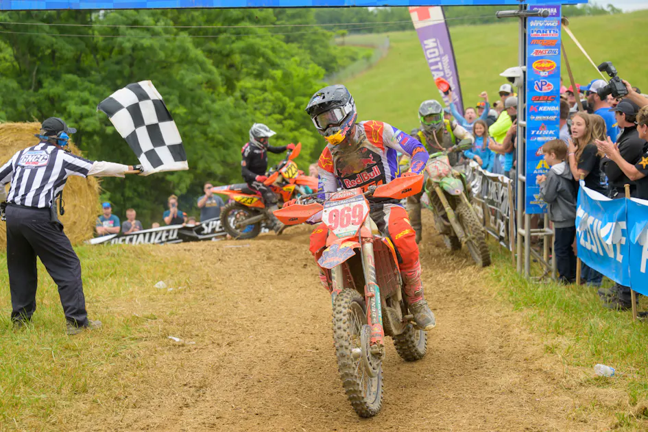 Davis was up front early while Riordan raced his way to the head of the pack following a mistake at the beginning, but it wasn't enough as Davis held on as the checkered flag flew. The pair – both racing KTM 250 XC-F machinery – are now separated by 23 points in the championship standings with five rounds remaining on the schedule.
