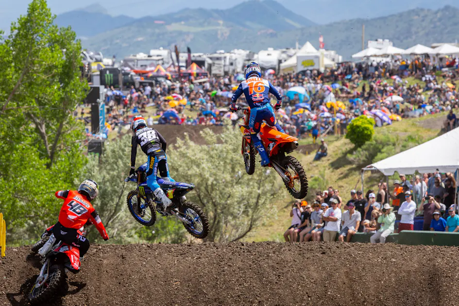Following that first moto, and an overall disappointing day for Levi Kitchen (who was expecting Thunder Valley’s usual deep, long ruts but instead found a much shallower, hard packed track) it would appear Deegan and Vialle were about to break away in this title fight. Then moto two came around, and Chance Hymas logged the best race of his early career to dominate the proceedings. Now Hymas and Vialle leave Colorado tied for second in points. Vialle and Deegan battled, but they might not be alone going forward. Hymas, who has been strong at every race this year, is also in the hunt. Vialle also crashed again the second moto while trying to catch the duo ahead of him.