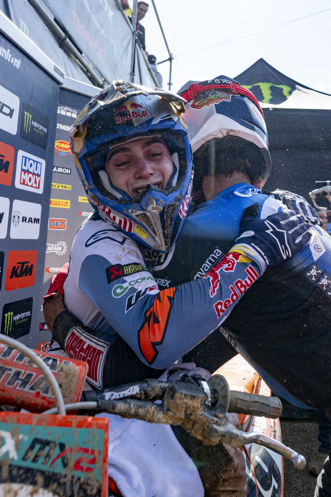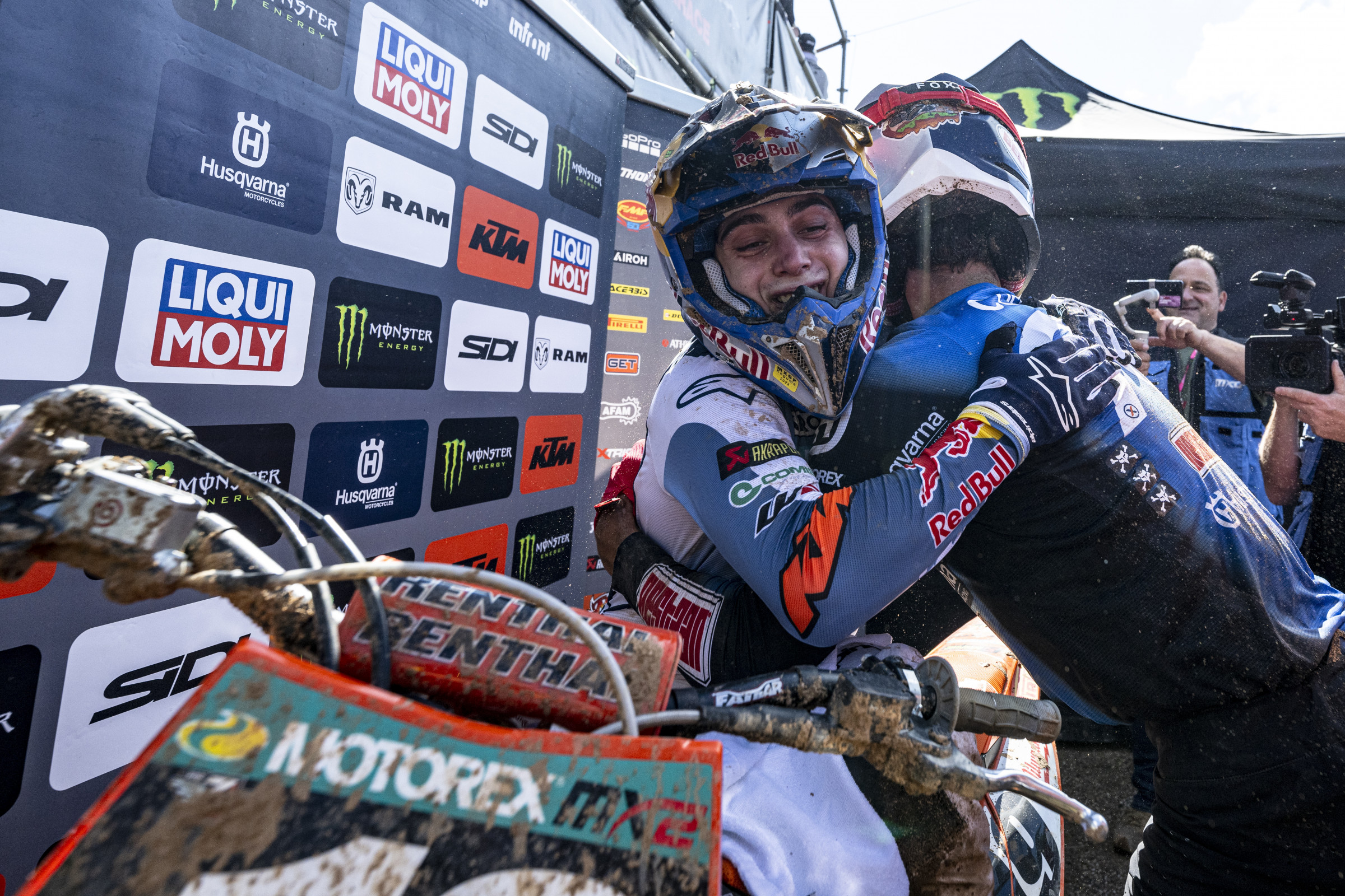 I saw someone post that with the Coenen brothers, Sacha on the KTM and Lucas on the Husqvarna, you can expect at least one holeshot and one yard sale of a crash at every round, and that held here too as Lucas had some spills and both brothers grabbed good starts. And like the Lawrence brothers, the Coenen brothers, still only 17, are also headed to America, but probably not until the 2026 season. And also like the Lawrence brothers, Sacha and Lucas are represented by agent Lucas Mirtl.