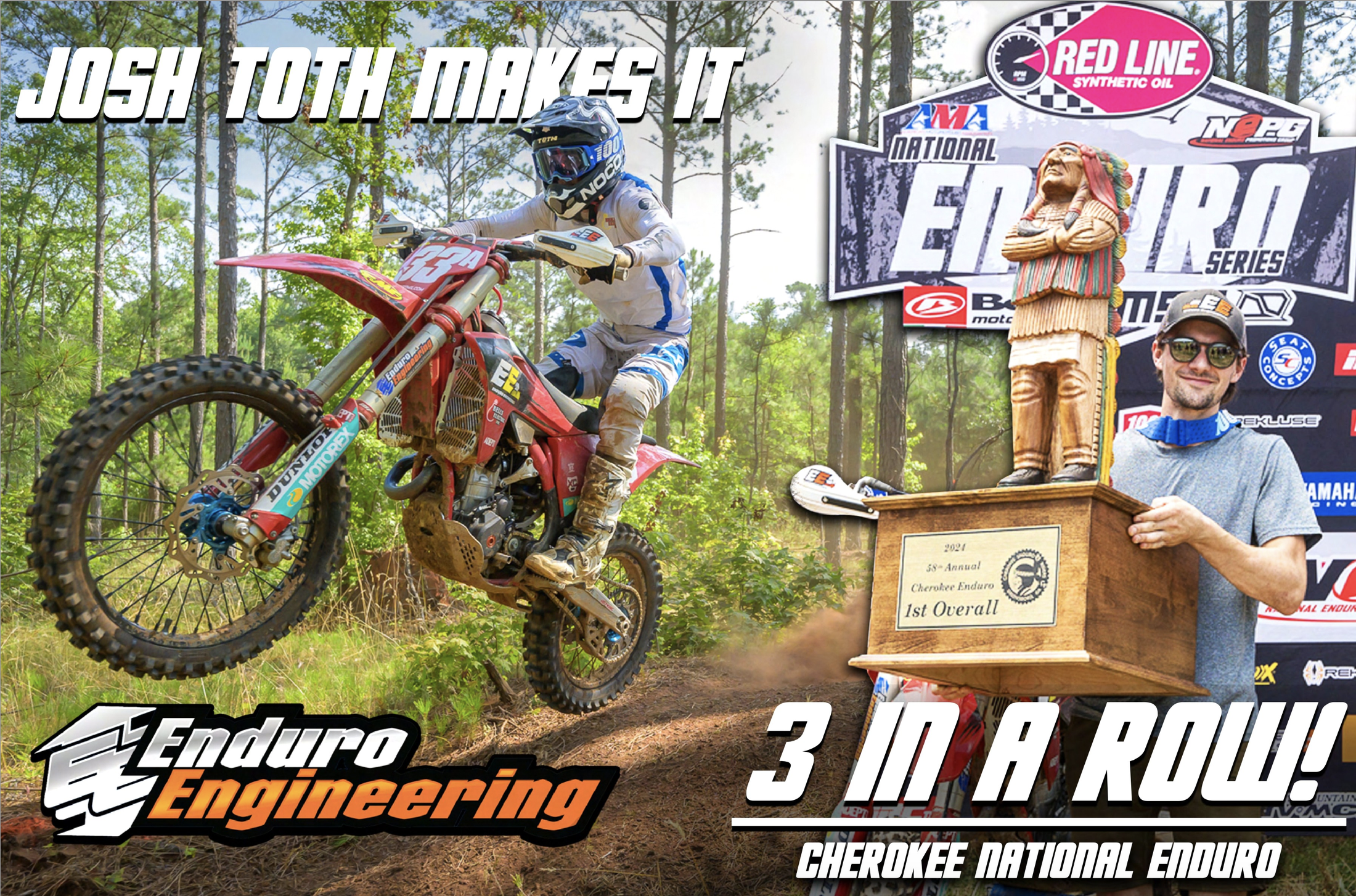 And the Cherokee National Enduro overall in Georgia went to Josh Toth, and we would just like to compliment that event on one of the coolest trophies we've ever seen!
