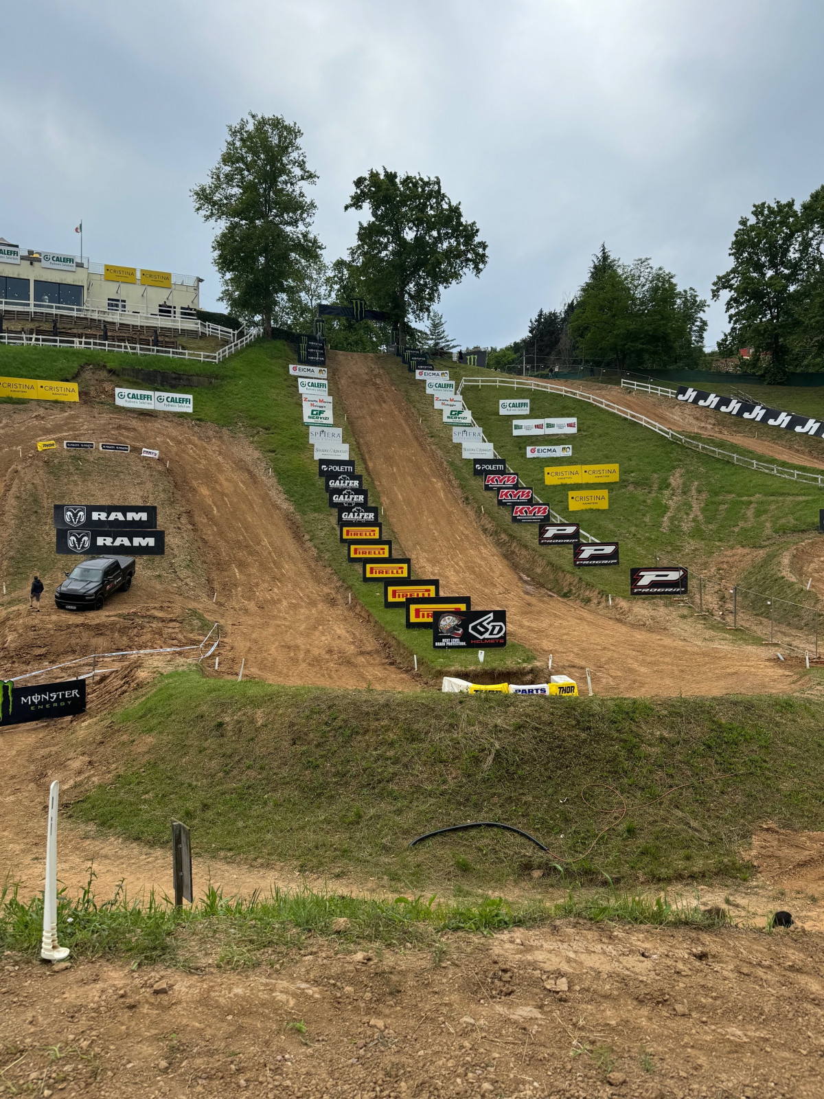 The track this weekend of course became famous for the MXoN in 1986 when Americans David Bailey, Rick Johnson, and Johnny O’Mara all dominated, Johnny infamously on that 125, and then again the event was here in 2016 also. It's hilly and pretty hardpack right now as they're expecting rain tomorrow so it's sealed. Sunday temps should be great though.