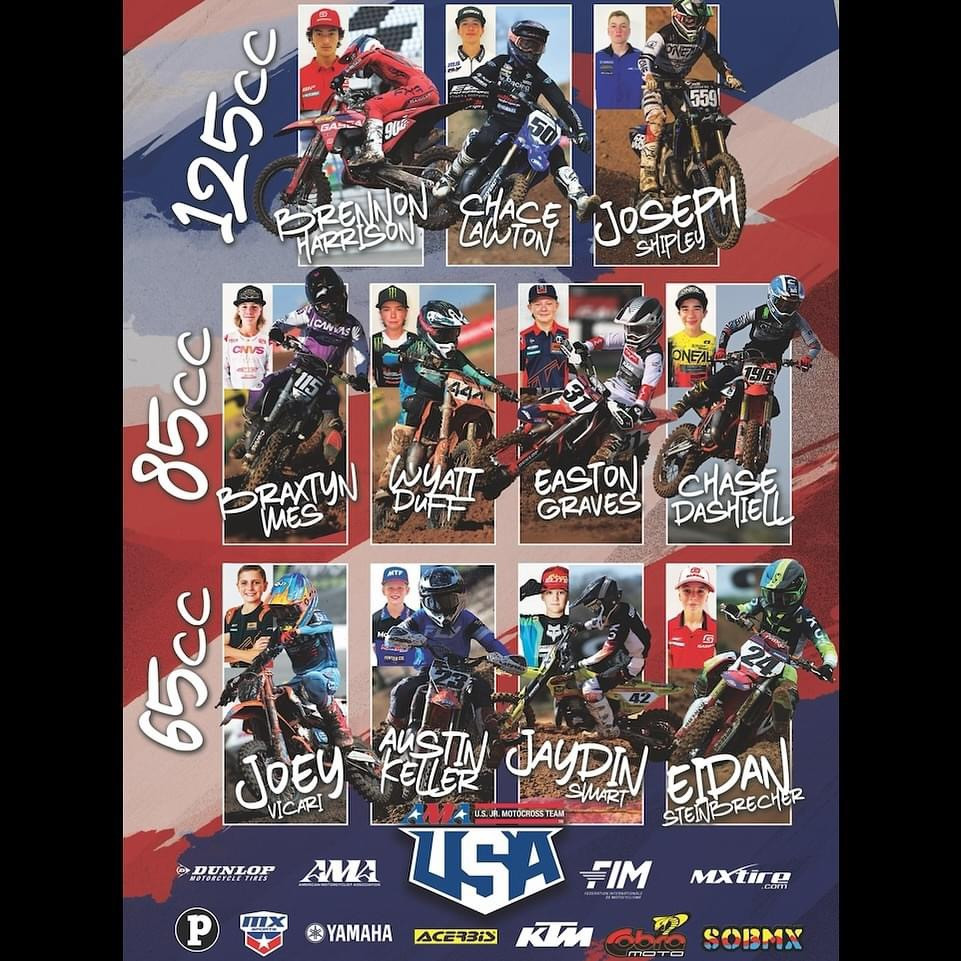 “We have put together an incredibly talented team full of world-class riders to compete at this year’s FIM Junior Motocross World Championship,” AMA Deputy Director of Racing Mike Burkeen said. “I know this group of racers will represent the United States well and we look forward to going out to the Netherlands and competing on the global stage.”