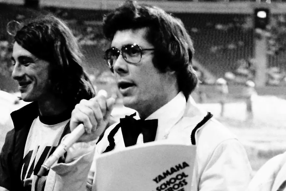 Dubbed "Supermouth" by the Los Angeles Times, Huffman's distinct voice and incredible one-liners made him perhaps the most impactful live supercross announcer ever, as his call is the sound track to so many races of the 1970s and 1980s, when the nicknames, the race call and the volume itself was so darned big. Every fan of that era has a favorite Huffman line, which often mark the time in history he was both calling, and referencing. Like, "I think I just saw a German soldier stick his head out of one of those ruts." Or "He's on him like a Hare Krishna on an airport traveler." There's also, "Tougher than a $2 steak." He also helped usher in the mega era of motocross nicknames, like Broc "Golden Boy" Glover and Mark "The Bomber" Barnett, Mike "Too Tall" Bell and, of course, Bob "Hurricane" Hannah.