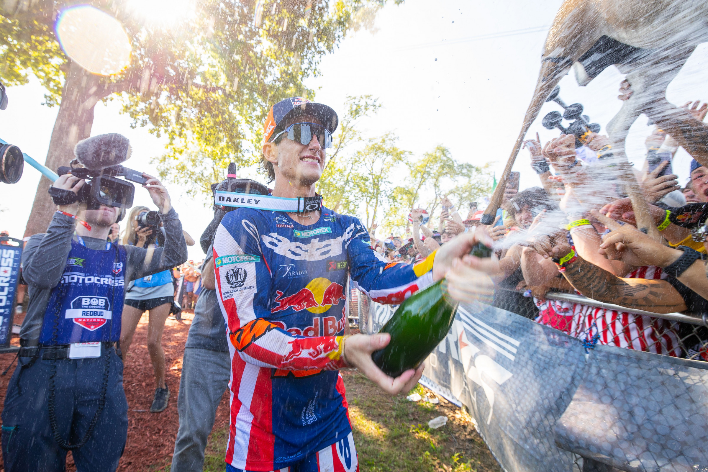 Sexton said he was flowing so well in the second moto that we wasn’t even using much energy. He said he could have ridden 45 minutes at that pace. The only piece left was to keep it on two wheels, and then celebrate with the fans.