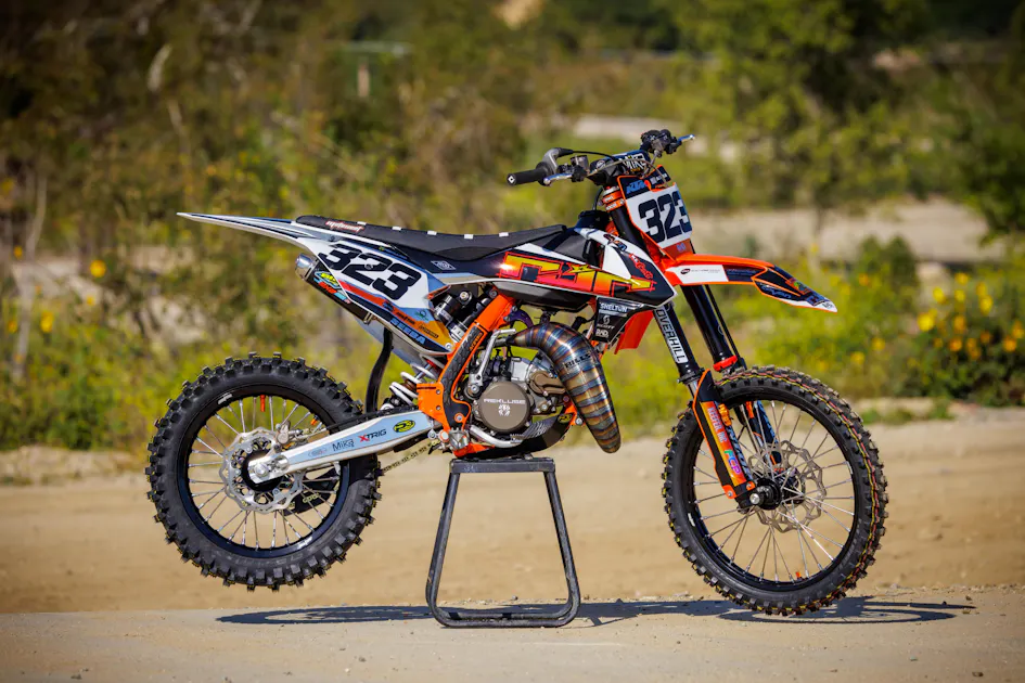 For our 2024 KTM 112cc Supermini Garage Build, we teamed up with Randy at RJR Motorsports, which is a local High Desert moto shop that specializes in all things mini bikes. Since we don’t do a lot of small bike features, I thought this would be a great build to do since Loretta’s time is here. I was intrigued to see how much power can be pulled out of this current crop of 85cc bikes, and since I have recently had some time on a stock blue one, why not see what a full blown supermini can do?