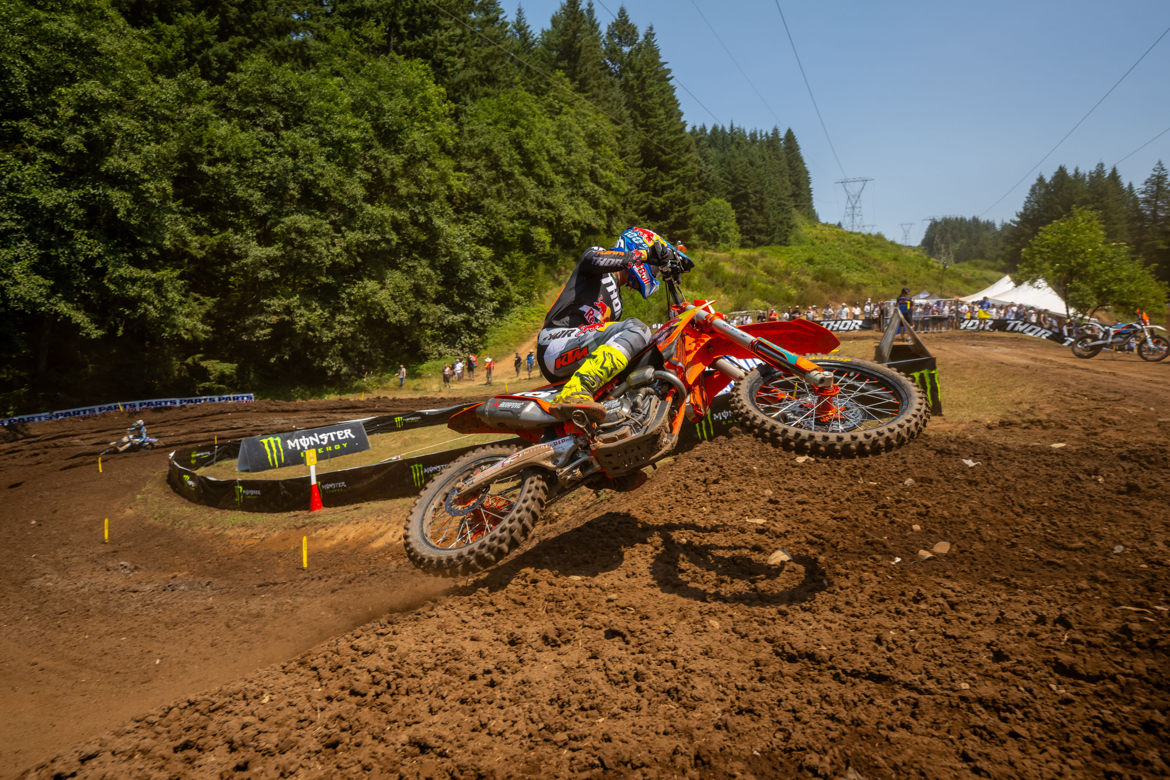 Tom has been fairly consistent all season, with podiums in five of the eight rounds so far. However, heading into Washougal, he had not been on the podium since Southwick. At Spring Creek, he was in a good position to benefit from his competition going down in the first turn, only to go down himself in the sand whoops, injuring his hand in the process. He was content to be back on the podium at Washougal, especially given his injury, as he said in the post-race press conference: