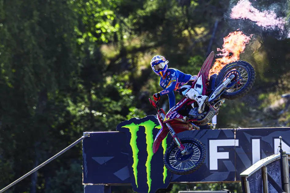 With temperatures unusually high for the northernmost MXGP event of the season, the event was to be a test of mental fitness and concentration on the hard-packed, loose surface, and fans from all over Scandinavia and Europe created a stunning atmosphere as the smoke flares and the noise machines cranked up around the rocky valley! A special mention has to go to home hero Isak Gifting, who wore a toy Viking helmet over his race one, as well as a Swedish flag cape, for the sighting lap of each race on his JK Racing Yamaha, provoking a wonderful response from the crowd that obviously inspired him for when the gate dropped!