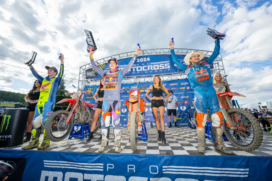 At the ninth round of the 2024 AMA Pro Motocross Championship, KTM's Chase Sexton claimed the overall win with 2-1 moto finishes. It was Sexton's fourth straight overall win as the championship is in its final stretch. Hunter Lawrence, racing on the all-new 2025 Honda CRF450R, finished 1-2 for second overall as Aaron Plessinger (KTM) finished 3-4 for the final spot on the overall podium.