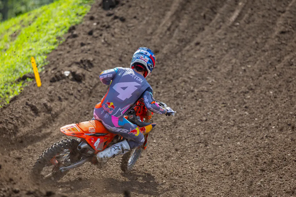 “Yeah, to be honest, I was just really excited to get a holeshot," he laughed in the press conference. "I haven’t pulled a holeshot all summer. Today we made some adjustments to the bike for the start, and it really paid off. My first one was good. The second one was even better, and I just wanted to sprint when the track was really good and just try to capitalize on getting a good start and show my sprint speed. I've been working on it a lot in the last three weeks, with Tom [Vialle] and I kind of want to show that and just try to get a gap. So, I felt really good at the beginning and then with a track like this, you have to be really on your toes the whole moto and not slack off too much but not override because it can bite you. Obviously, we saw that a lot today. So, yeah, it was a fine line of how much you could push, but I was just trying to stay steady. Had fun. I had a really good first moto, I felt solid the whole time. I made some bike changes for moto two and I told my mechanic after the site lap, 'I feel good this moto, I'm ready to go.”'So, had fun, it was good. Got to battle with Hunter and overall, a good day.”