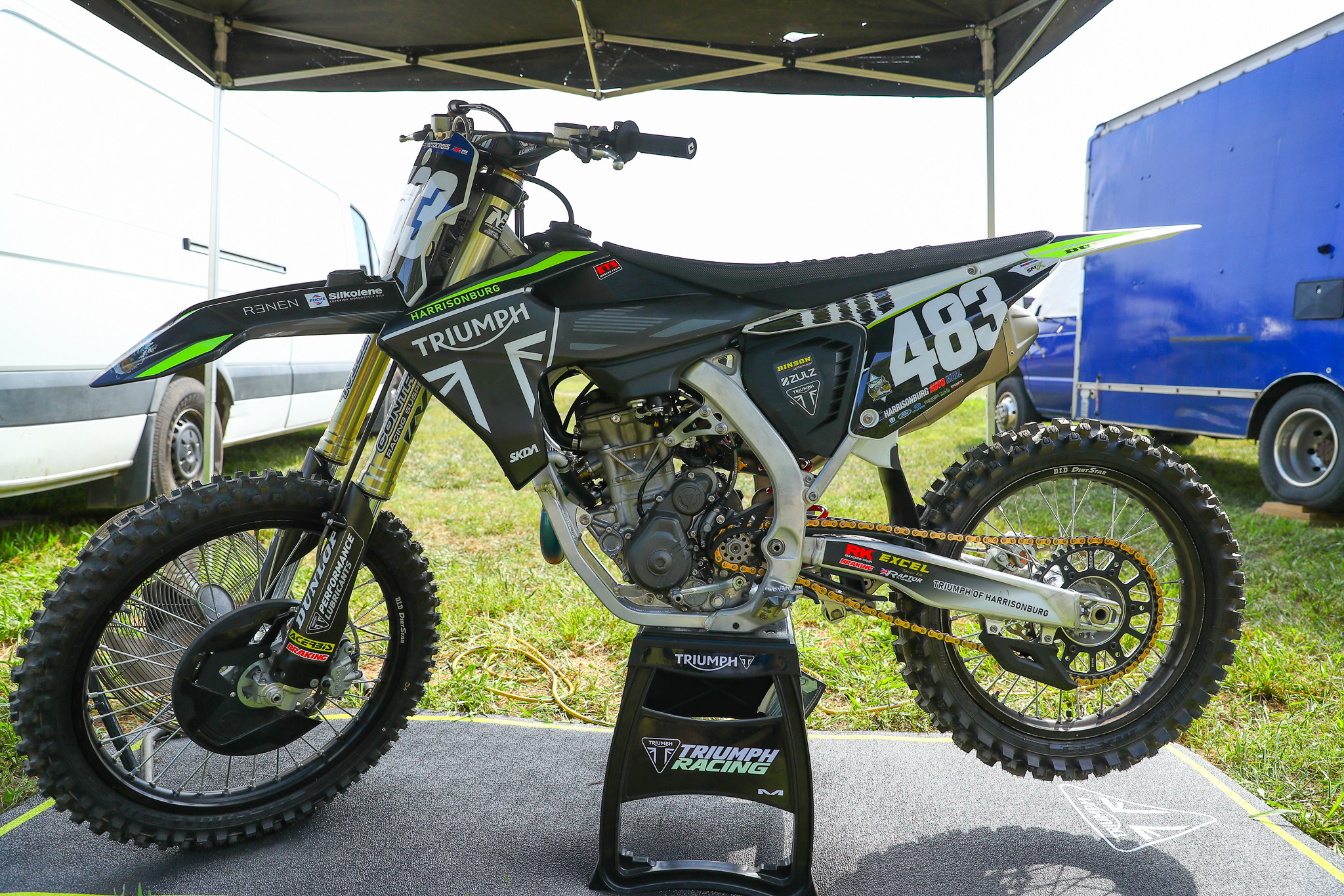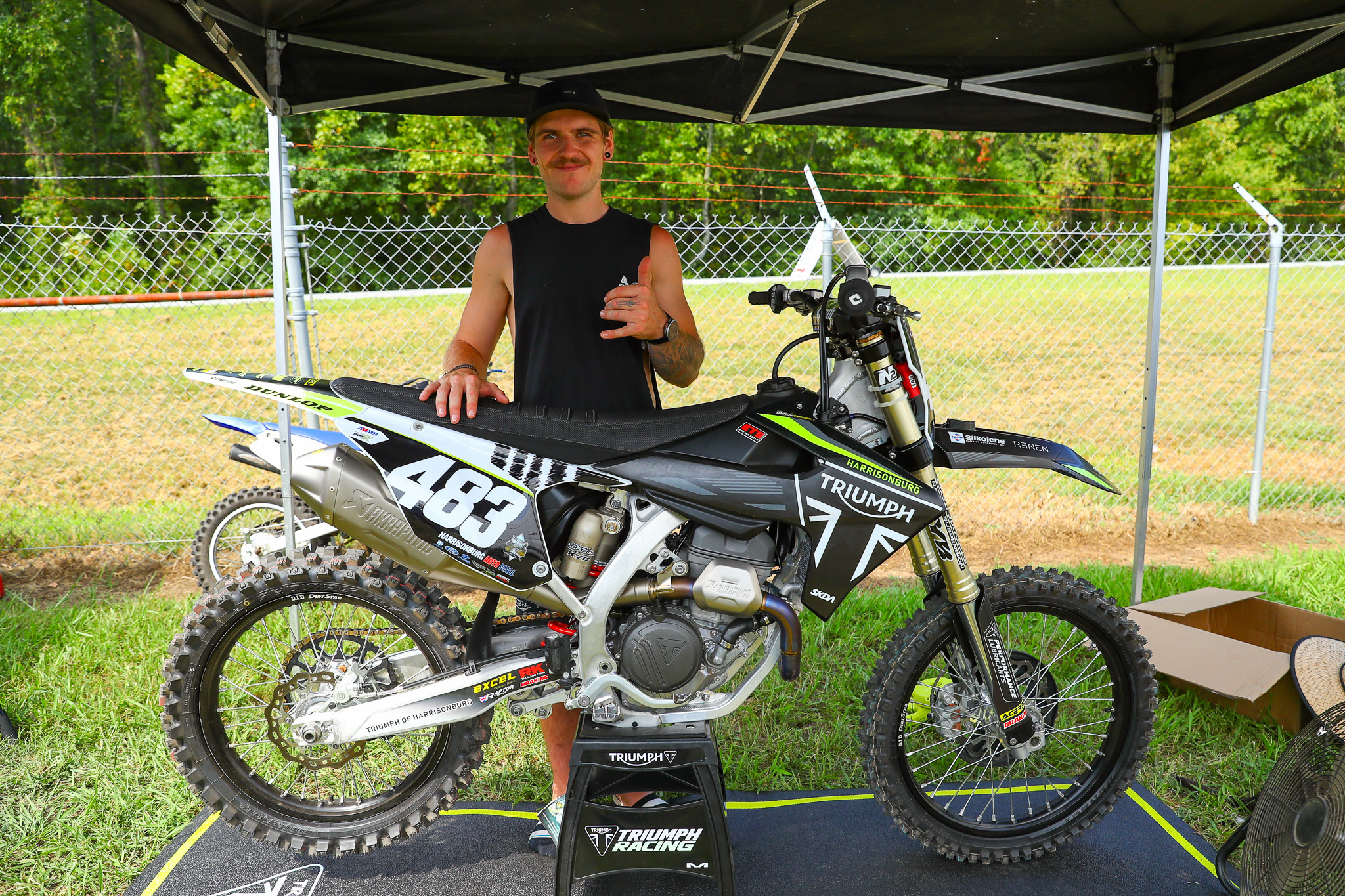 Brian Carroll, Bryton’s father, saw the post online and the Carrolls replied, telling the story of the blown up YZ450F. After a few messages and phone calls, Carroll and Gantt worked out a deal that would see #483 graphics on the Triumph of Harrisonburg TF 250-X. Gantt, whose dealership has been involve with Triumph Motorcycles for over a decade, said he never imagined being in this position and offering his dirt bike to someone. Especially not a Triumph Motorcycles one!