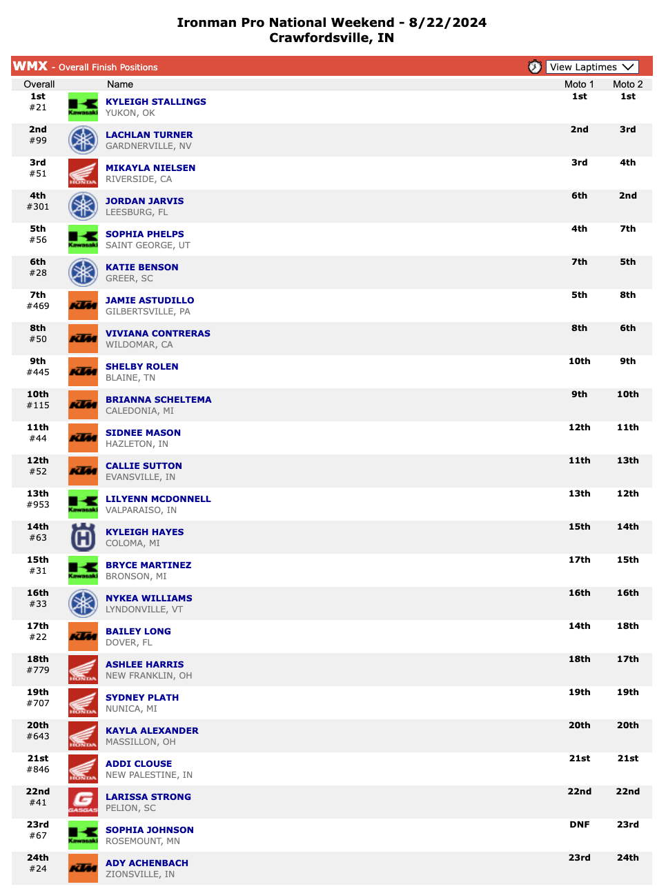 With the results being mixed between motos one and two from second place on back, the overall results are as follows: