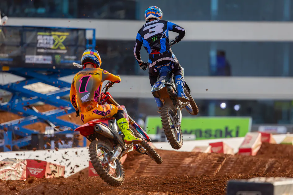 Monster Energy Yamaha Star Racing's Eli Tomac dominated the first 450SMX moto on the high-speed, hybrid SuperMotocross track. He led most of the second moto but finished in the runner-up spot after a fierce battle with Lawrence. SuperMotocross event results are determined by a combined two-moto score, so Tomac earned second overall with (1-2) moto finishes. The freshly-crowned AMA Pro Motocross champion, Red Bull KTM Factory Racing's Chase Sexton, was in the mix in both 20-minute plus one lap motos. Sexton had to settle for a third overall when the two leaders pulled away from him late in the final moto. In the 250SMX Class, Monster Energy Yamaha Star Racing's Haiden Deegan delivered two impressive moto charges after mid-pack starts in both motos; Deegan took both 250SMX moto wins in convincing fashion to earn the 250SMX overall win.