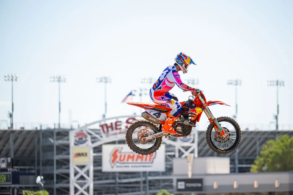 After entering the SMX Final in contention for the 450SMX title, reigning AMA Pro Motocross 450MX Champion Chase Sexton's chances unfortunately ended prematurely on the opening lap of Moto 1 tonight. The Red Bull KTM rider came together with another rider and injured his right hand, which ruled him out for the remainder of the evening.