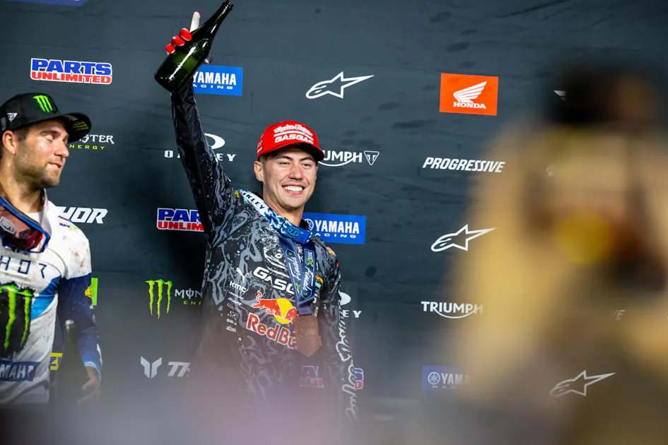 Pierce Brown (GasGas) took 2-1 finishes in the motos to earn his first professional race win as Haiden Deegan (Yamaha) finished 1-2 for second overall and Jordon Smith (Yamaha) finished 5-3 for third overall. Deegan claimed the 2024 250SMX World Championship as he is now the back-to-back 250SMX champion. Brown’s win also jumped him to third overall in the 250SMX championship standings behind Deegan and Vialle.