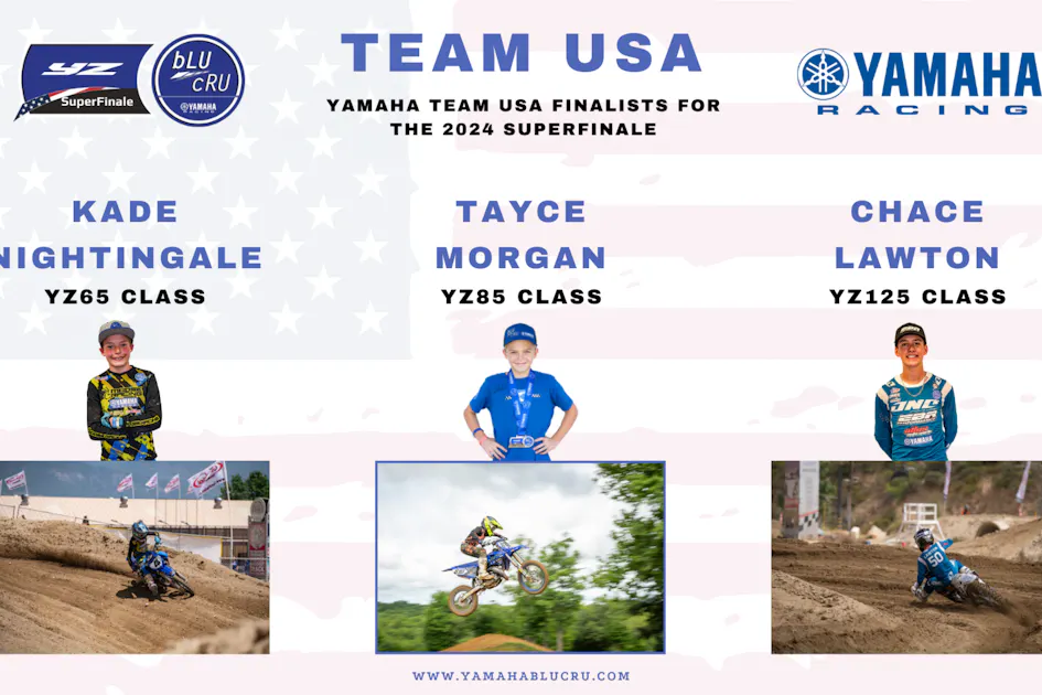MARIETTA, Ga. – Yamaha Motor Corp., USA, has chosen three young racers to represent the United States at the 2024 YZ bLU cRU FIM Europe Cup SuperFinale during the annual Motocross of Nation’s (MXoN) race. The SuperFinale invitation is the first time a major moto brand has hosted riders to MXoN in this way, and is the culmination of Yamaha’s 2024 bLU cRU Invitational races where racers competed for the coveted spots on Team USA at Glen Helen Raceway, Washougal MX Park, and Budds Creek Motocross Park earlier this year.