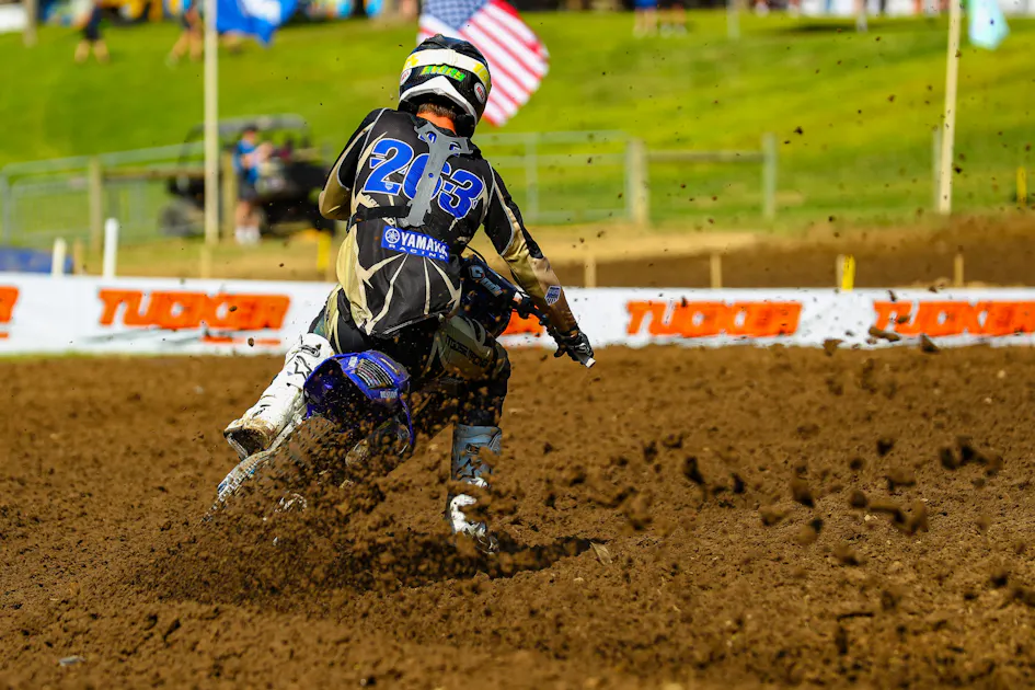 ![Caden Dudney at the 2024 Monster Energy AMA Amateur National Motocross Championship at Loretta Lynn’s Ranch.]()