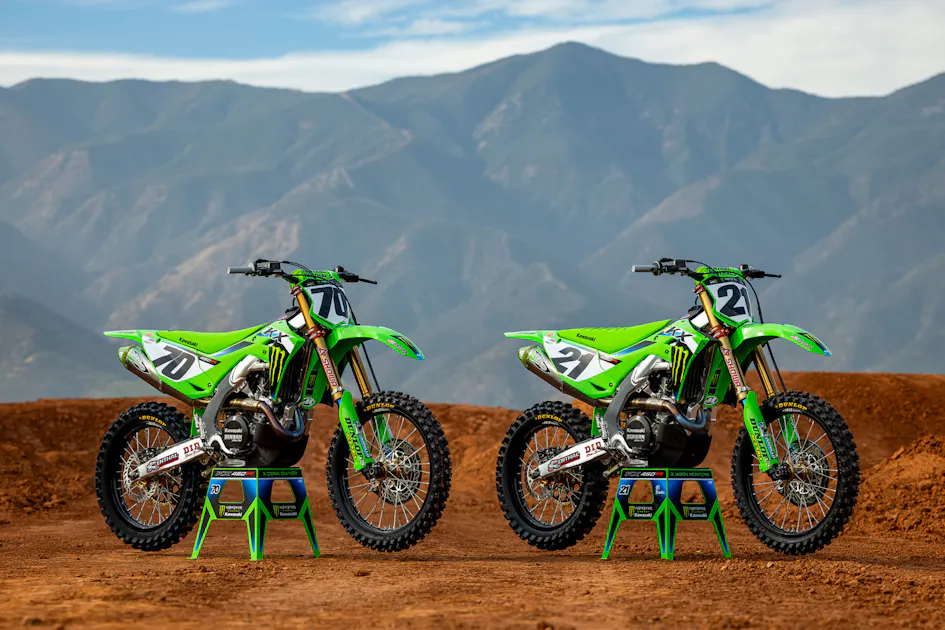 Jorge Prado and Jason Anderson will handle the factory Monster Energy Kawasaki KX450s for 2025. Here's a look at the duo in their photo shoot for the new season, via Octopi Media.