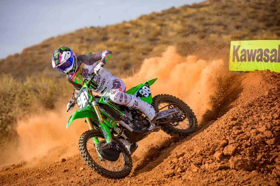 Next up, his pro debut in the U.S. at the Ironman National finale—his first official race with Monster Energy/Pro Circuit Kawasaki. He finished 12th overall with 15-11 moto finishes. It was enough to earn a two-digit number for 2025 from just those two motos!
