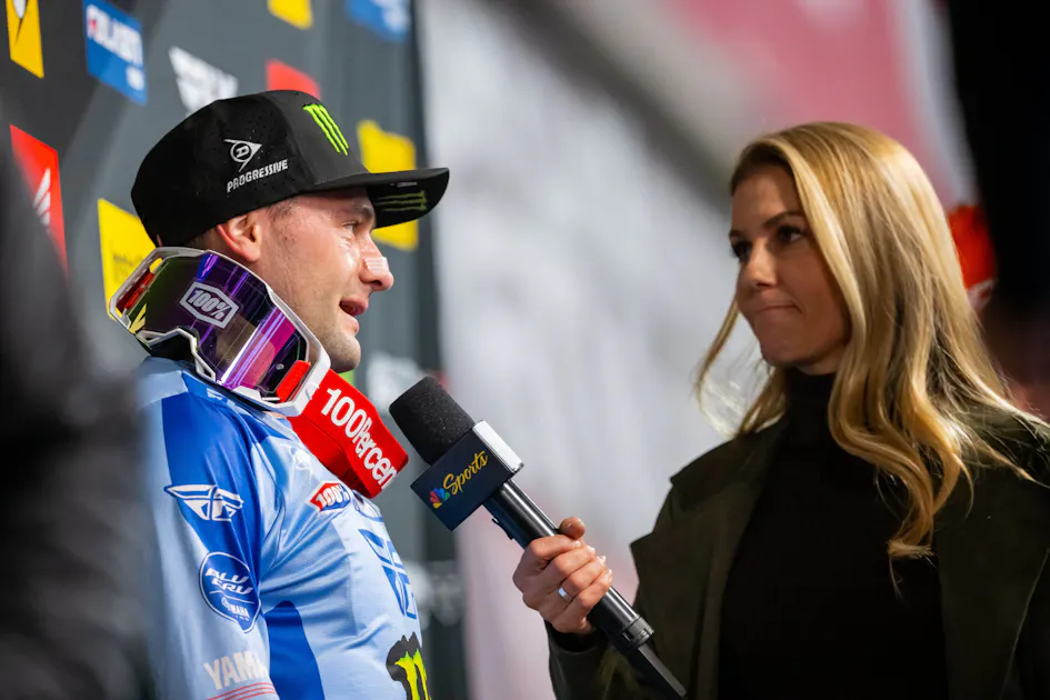It was shorter than the normal Glendale start. For Tomac, he likes going to the outside and letting that YZ450F power do its thing. Without the length of the stadium to work with, the exit from the grates becomes much more impactful. Tomac’s default is to go outside so when things aren’t going to plan, he was willing to try his tried and true method to save the night. The Yamahas seem to be feast or famine on the starts right now with no in between. That’s typically a sign of a process that isn’t repeatable. I would guess that will be a point of emphasis this week.