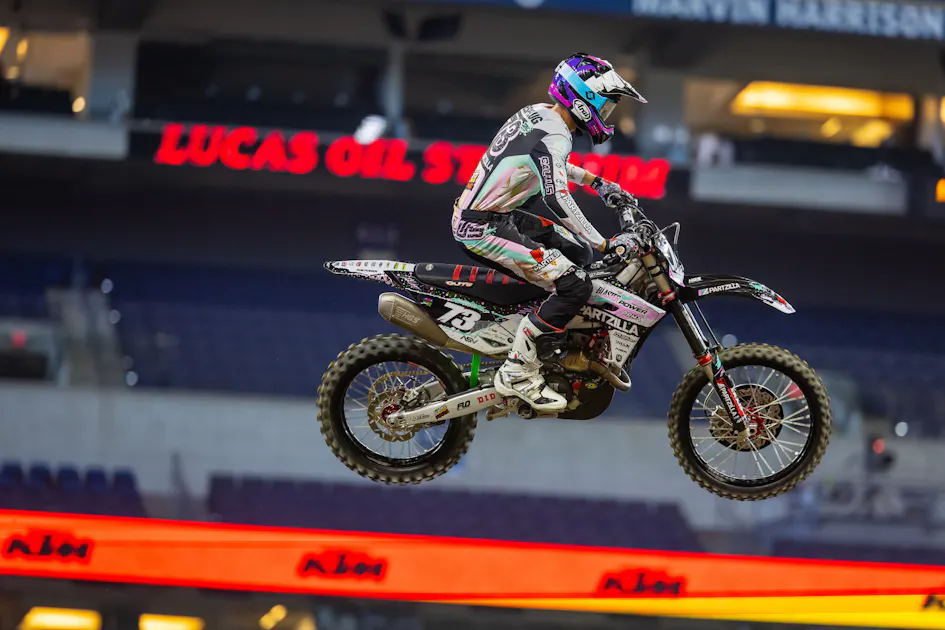 Supercross sophomore Preston Boespflug had a big crash in the first 250SX East Division qualifying session on Saturday at the Indianapolis Supercross. The Washington native was going to come up short in a rhythm section and ejected off his bike, landing feet first. He was accidentally clipped by Hardy Munoz, who had nowhere to go and ran over Boespflug’s legs and crashed too. Boespflug was immediately favoring his right knee, and the qualifying session was red flagged, which allowed the Alpinestars medical crew to tend to the #73. Eventually, he was placed on a backboard and onto the back of the medical cart.