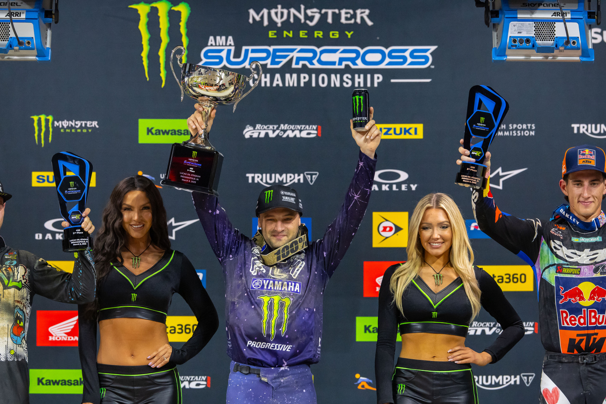 As far as the 250 class goes, here’s a cool little factoid: Winner Seth Hammaker did something that I’m pretty sure has never been done in Monster Energy Supercross or the AMA Pro Motocross Championship. No, he’s not the first guy from Eastern Pennsylvania to win—that would be Tony DiStefano—and Hammaker himself won has won before, back in 2021 in Arlington, Texas in what was just his third professional race. So, what did Hammaker do that’s never been done before? He won wearing #56.