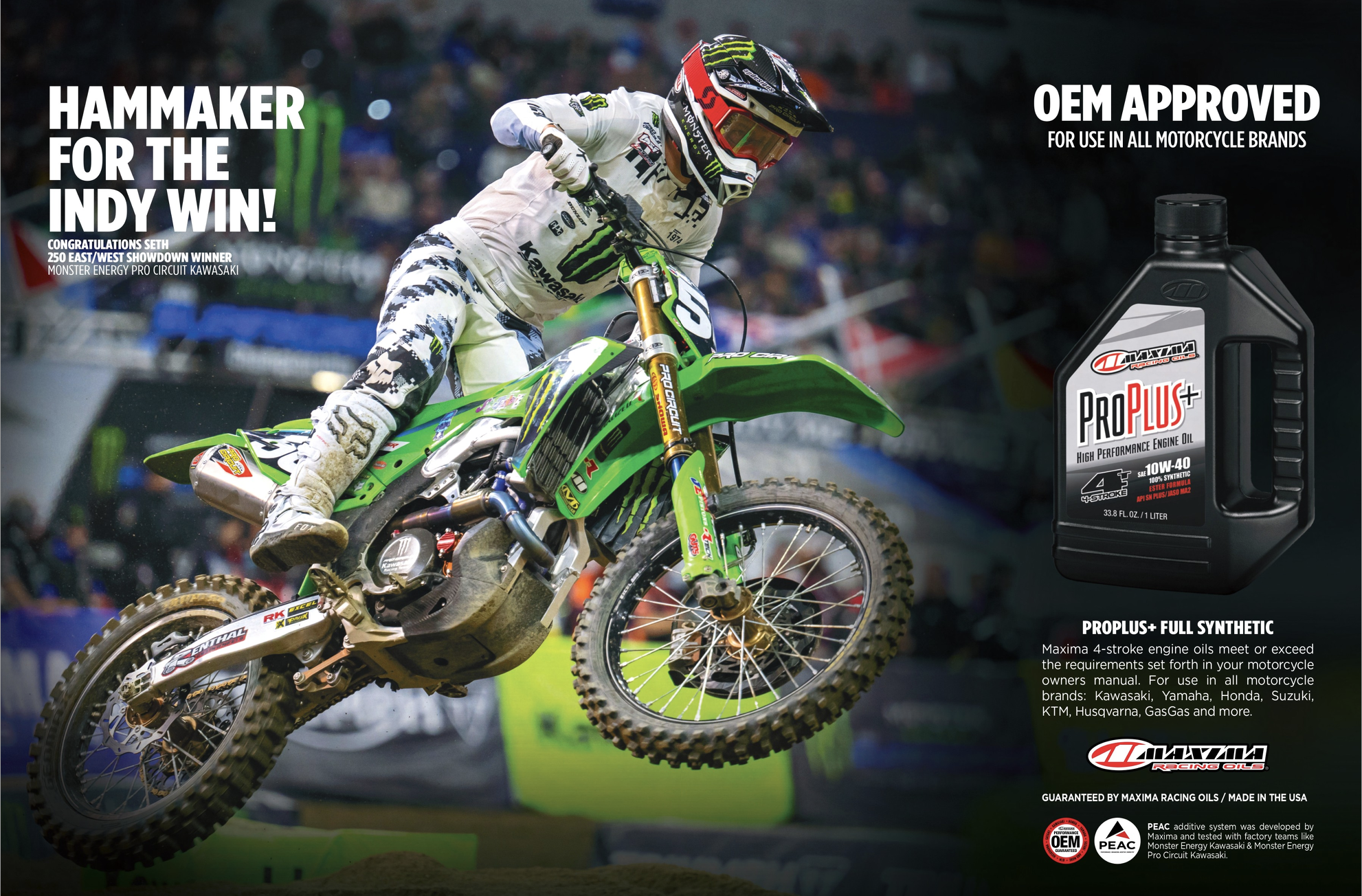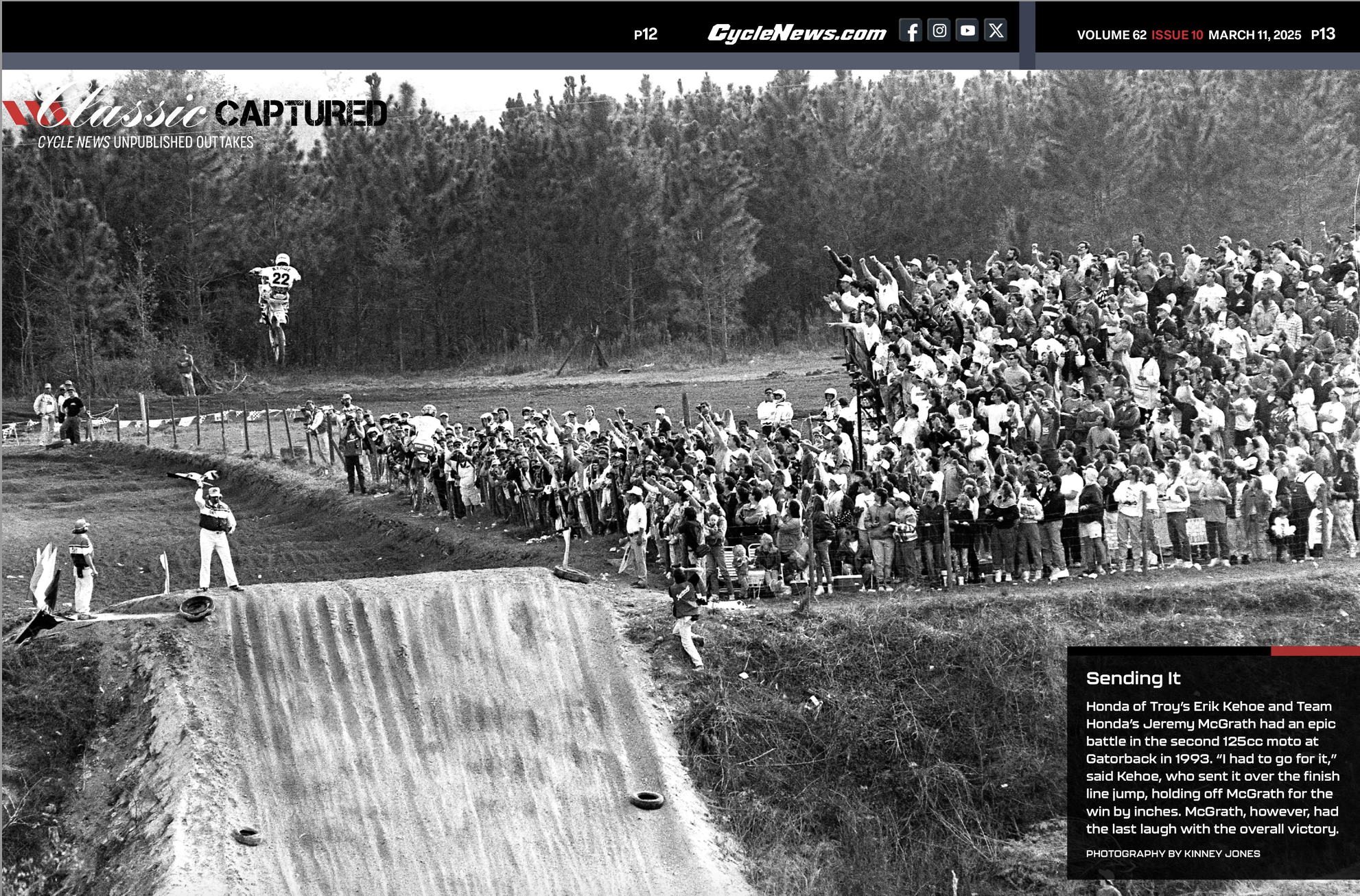 Lots of win ads in this week's Cycle News as Yamaha was on top in 450SX, Kawasaki at both the Indy 250SX and the GNCC at a very muddy Talladega (and KTM's Grant Davis won XC2 Pro and earned second overall). Also, a nod to Paul Buckley, who's epic photo from the 1993 Gatorback 125 National of Honda of Troy's Erik Kehoe launching the finish line just ahead of overall winner Jeremy McGrath, made yet another appearance—it's a photo we never get tired of seeing, and is truly a motocross classic!
