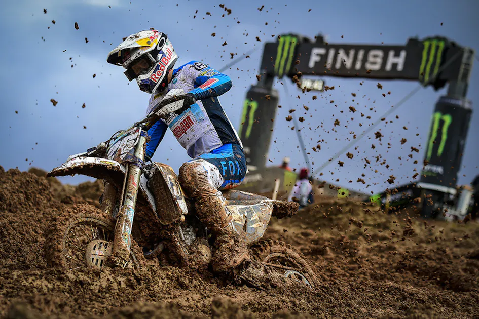 The MX2 class saw an emotional win for the master of the mud, Nestaan Husqvarna Factory Racing new boy Liam Everts, who followed up a first race second position with a resounding 81-second victory over his teammate Kay de Wolf! The reigning Champion was happy to gain back the red plate that he lost overnight with a determined second overall, but the most joyful face on the podium was Ferruccio Zanchi, after taking his first career race win and podium finish!