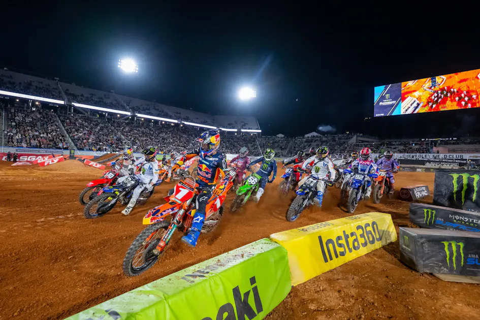 Cooper Webb down on the opening lap of race one. Align Media ![450SX start.]()