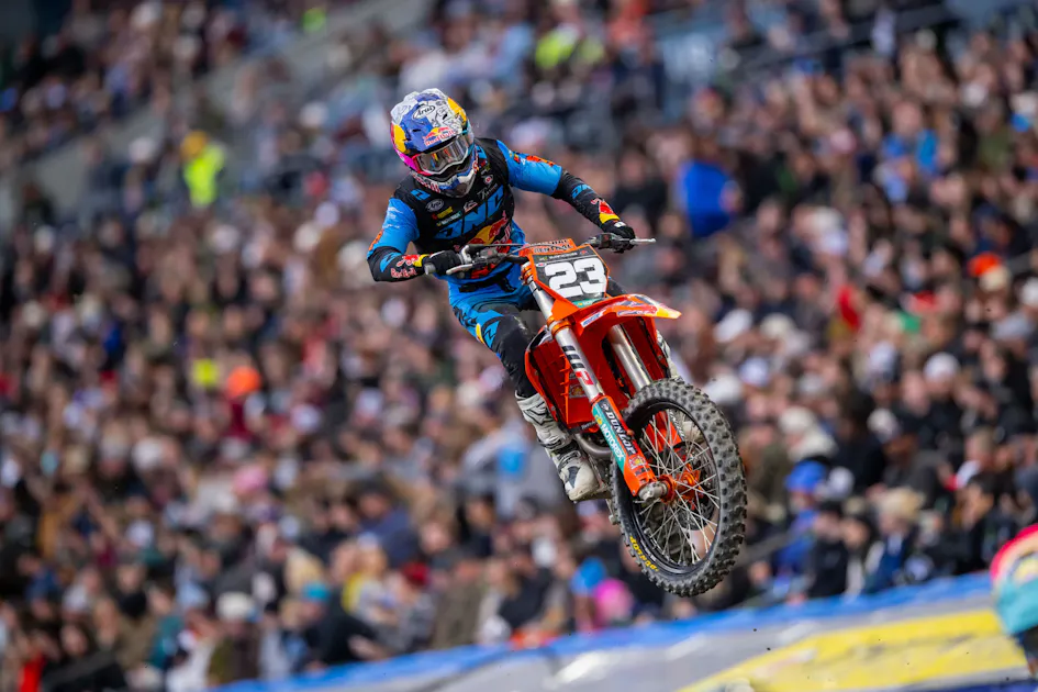 Red Bull KTM's Julien Beaumer had an eventful night in Seattle, battling hard core throughout the main with Garrett Marchbanks for second, losing that battle and then engaging late in a fight for the final podium spot with Haiden Deegan, which matters a lot because Beaumer is second in points to Deegan.
