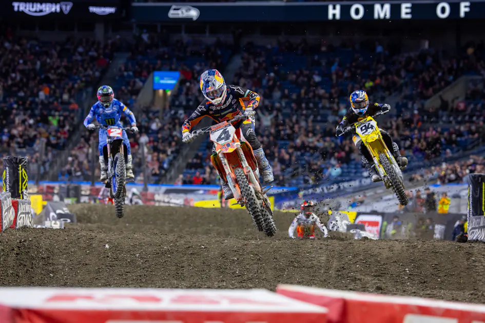 Hear Cooper Webb and Chase Sexton break down the battle for the 2025 Monster Energy AMA Supercross victory in Seattle, Washington. From jump lines to race strategy and championship series' momentum, it's all you need to know from the title rivals in six minutes. Presented by Fly Racing.