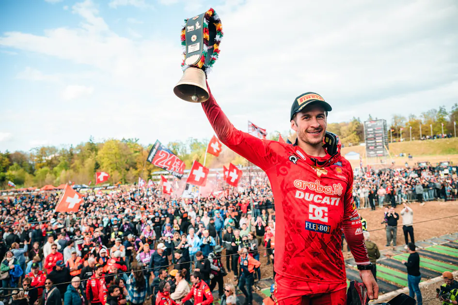 Jeremy Seewer: "It’s insane - Ducati’s first podium is huge! We worked so hard, starting from zero, and these guys have reached such a high level. It’s amazing! And to do it here at home, my first MXGP podium on Swiss soil, with all these fans and in this beautiful weather - I think it’s the best day of my life! The second moto didn’t start well for me. I got hit by a rock in the leg and lost all feeling for over a lap, so I dropped back, but then the race came to me. I’m so happy, and I want to thank everyone at Ducati!"