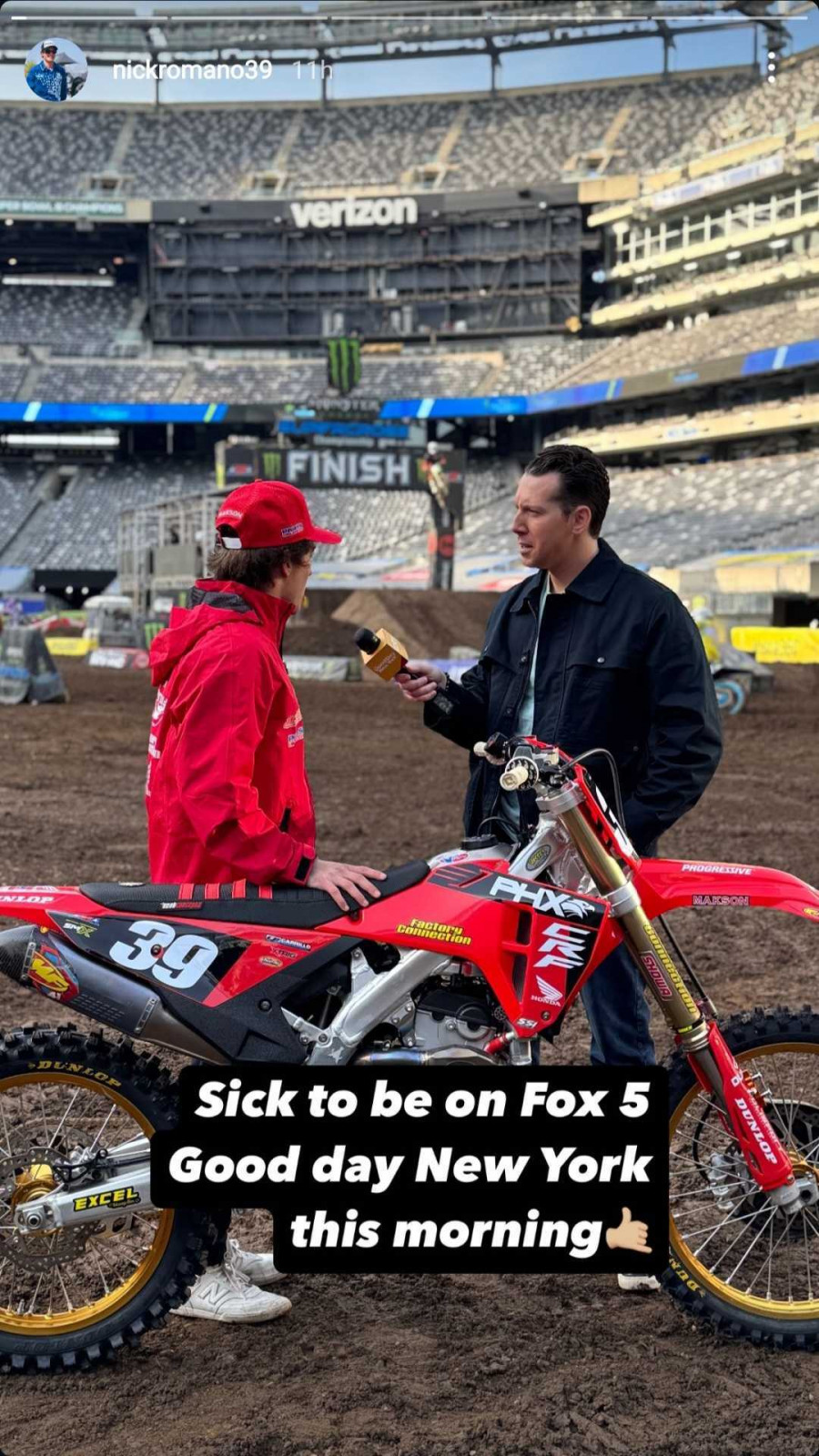 Racer X: Nick Romano, we're here at the East Rutherford Supercross. Unfortunately, you're not racing your home race this weekend, but talk us through everything, doing the local media and just being a guy from, what, 25 minutes away from here?
