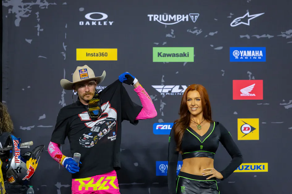 A couple of months ago, Aaron Plessinger said on the PulpMX Show he would be on Dale Earnhardt Jr.’s podcast—The Dale Jr. Download—following the end of Monster Energy AMA Supercross. The Ohio native has shared his love for Dale Earnhardt Sr. over the years, especially during his post-race TV interview following his podium at this year's Daytona Supercross in March.