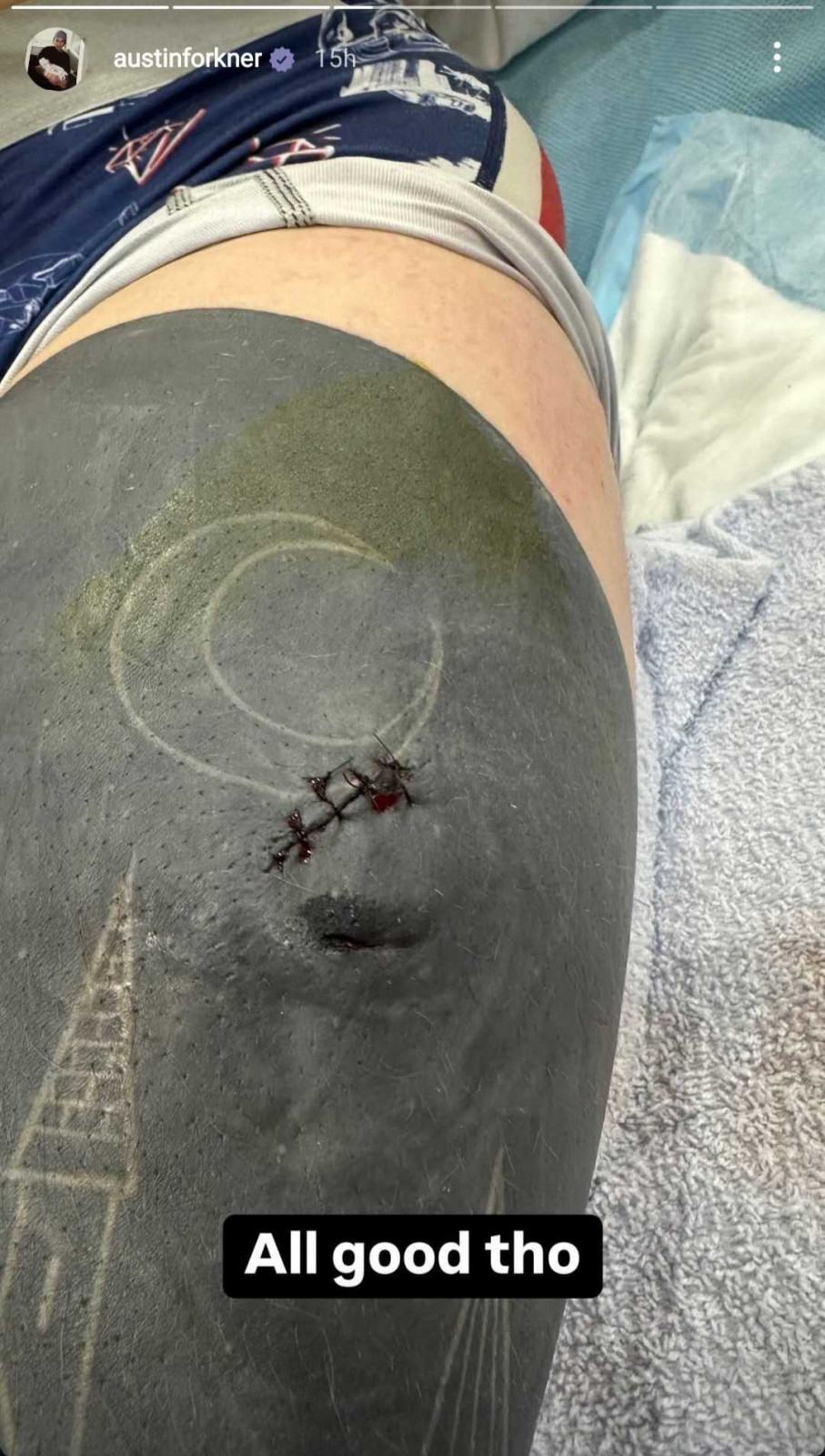 Forkner posted two photos of his leg on his Instagram story (which last for 24 hours before disappearing), but they are not overly gruesome.