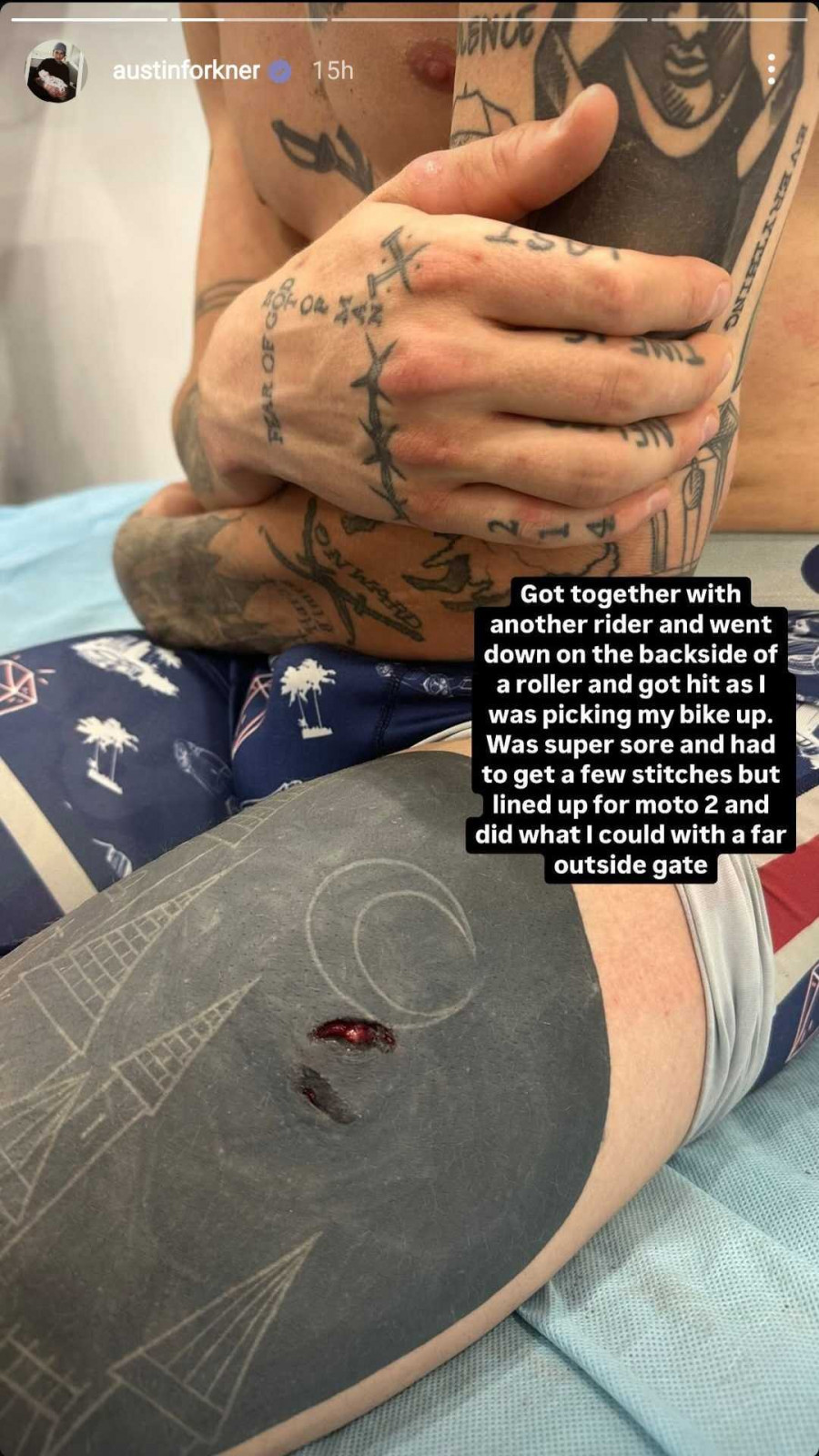 Austin Forkner Got Stitches in Between Motos Saturday After Footpeg to the Leg