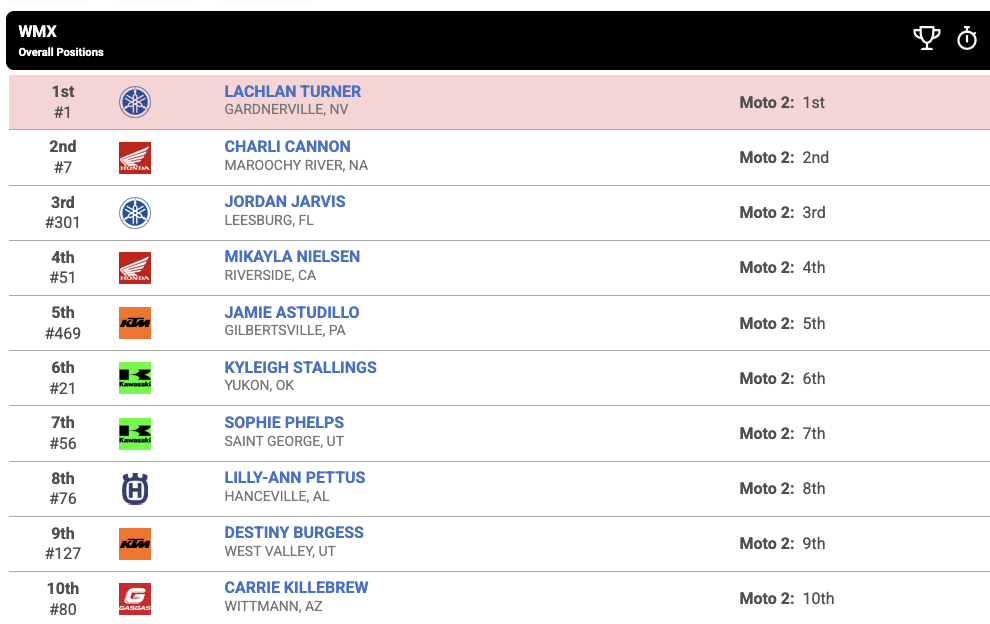 | Lachlan Turner (Yamaha) | Women’s Motocross (WMX) Championship | WMX Class |