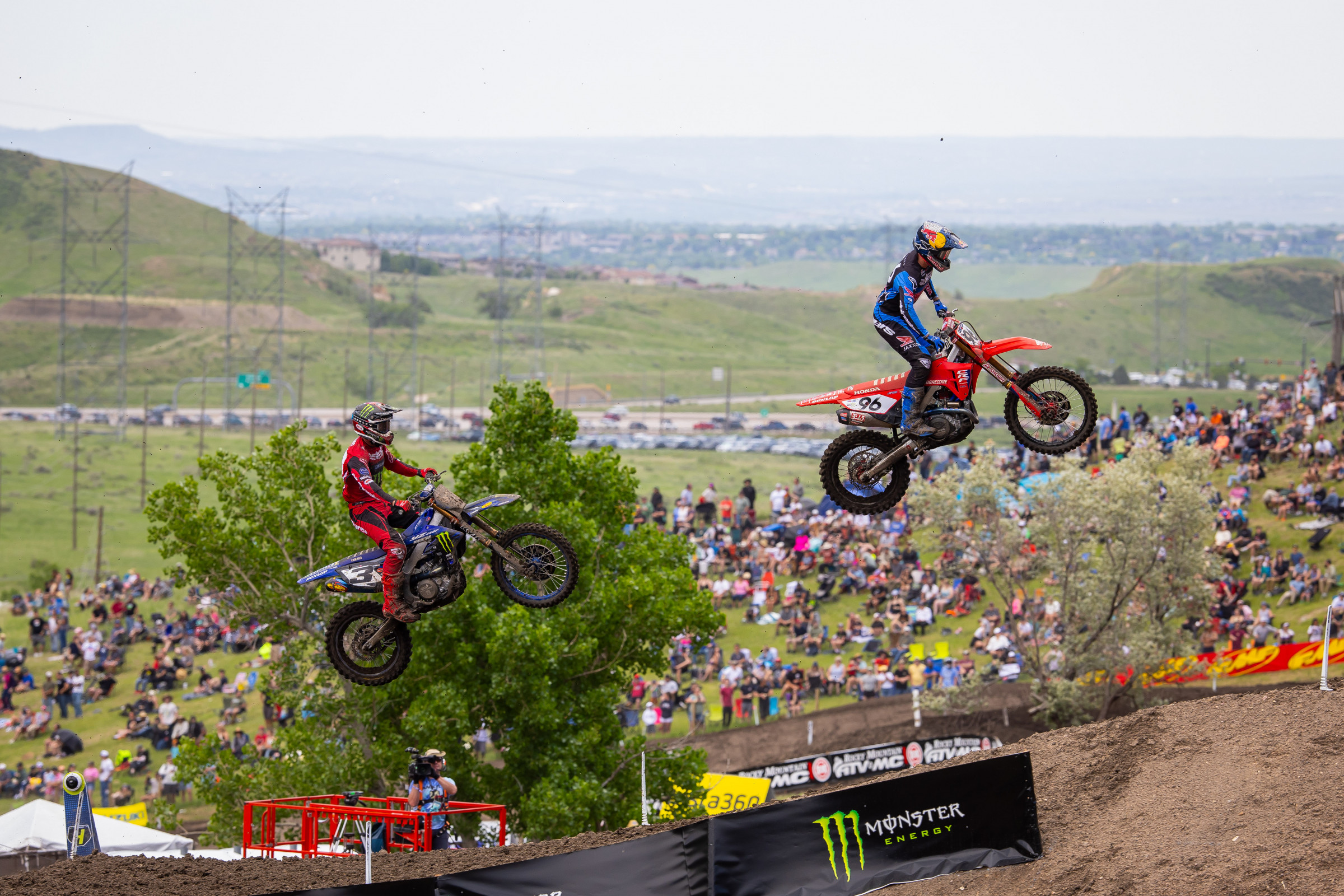 The fans of the AMA Pro Motocross Championship were in for a treat at Thunder Valley, watching a four-way battle for the lead the first 450 moto. Hunter Lawrence pulled the holeshot then quickly lost the lead to his brother Jett Lawrence and Aaron Plessinger. Under pressure from Eli Tomac the whole race, Hunter at one point got around AP and made a run for the lead, only for AP to pass him back. Still with only a couple of minutes left on the clock all four riders were under four seconds of each other. Tomac tried every line possible to get around Hunter who was able to hold him off until the last lap when Hunter fell over in a turn. Hunter would finish fourth in the second moto and his 4-4 finishes landed him fifth overall. Steve Matthes caught up with Hunter after the race to get his thoughts on battling Tomac.