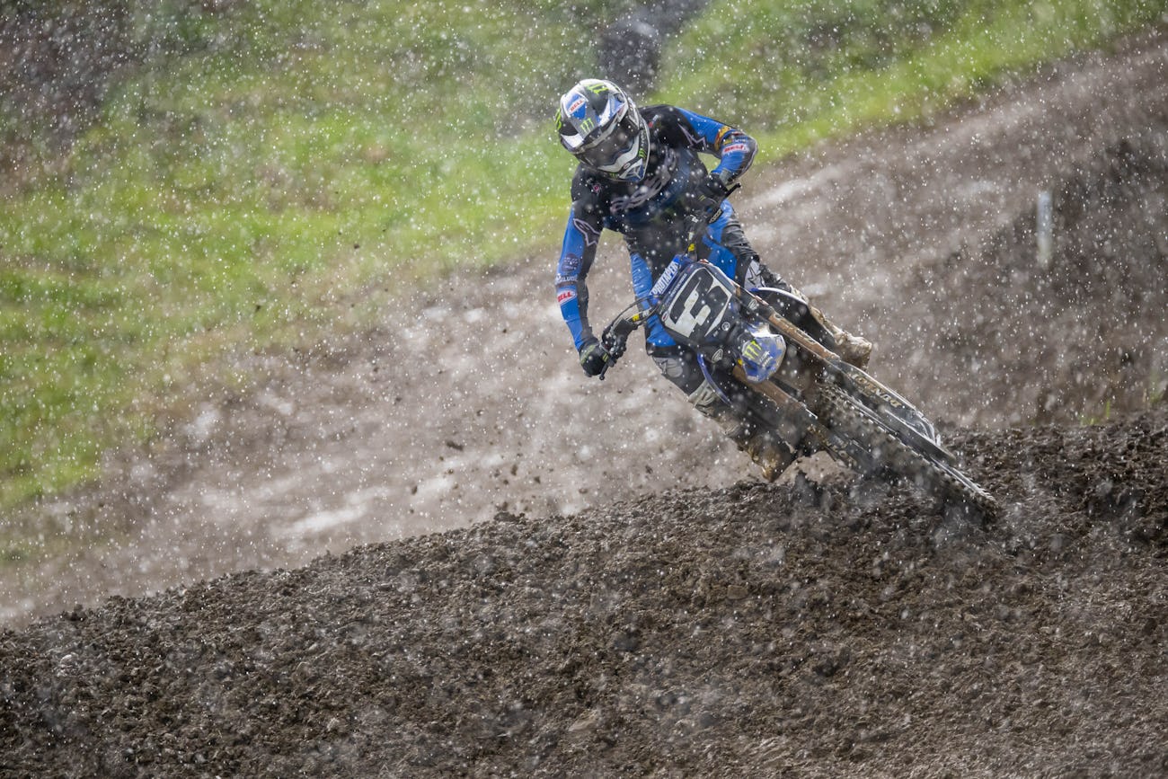 One thing that helped Tomac massively? After the parade lap he switched to roll off goggles for his moto. As the skies opened, his move proved prudent. From there, he rolled on to the moto win, good enough for third overall with a 5-1.