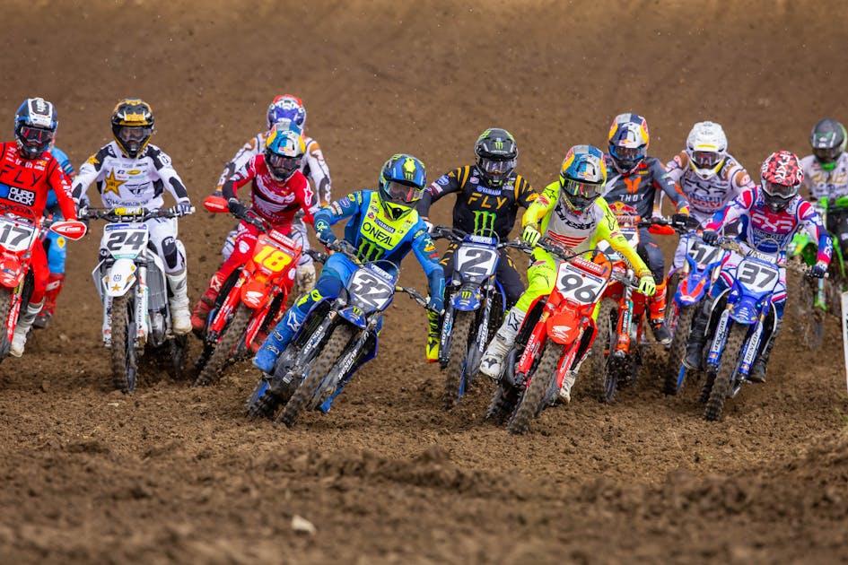 Jett Lawrence won again! His 1-3 scores were enough to get the job done, with a bad start and pouring rain holding him back for a bit in moto two, to the point where I thought his brother Hunter would get the overall. But nope, Jett did enough to get into third in moto two with what looked like no tear-offs even. Once the kid got settled into what he could and couldn’t do on the slick track with a paddle tire, he got busy passing guys.