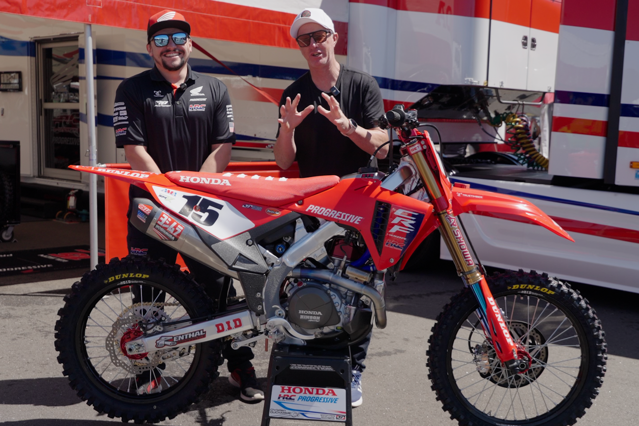Christien Ducharme walks Kris Keefer through the ins and outs of Dean Wilson's Honda HRC Progressive CRF450R. Wilson stepped in as a fill-in rider when both Jett and Hunter Lawrence went out with injury mid-way through Monster Energy AMA Supercross. Ducharme is usually Jett Lawrence's mechanic but stepped in for Wilson to finish out the season. He talks through Wilson's setup compared to Jett's normal setup. “If we keep the wheelbase the same, that keeps the suspension pretty predictable," he said.