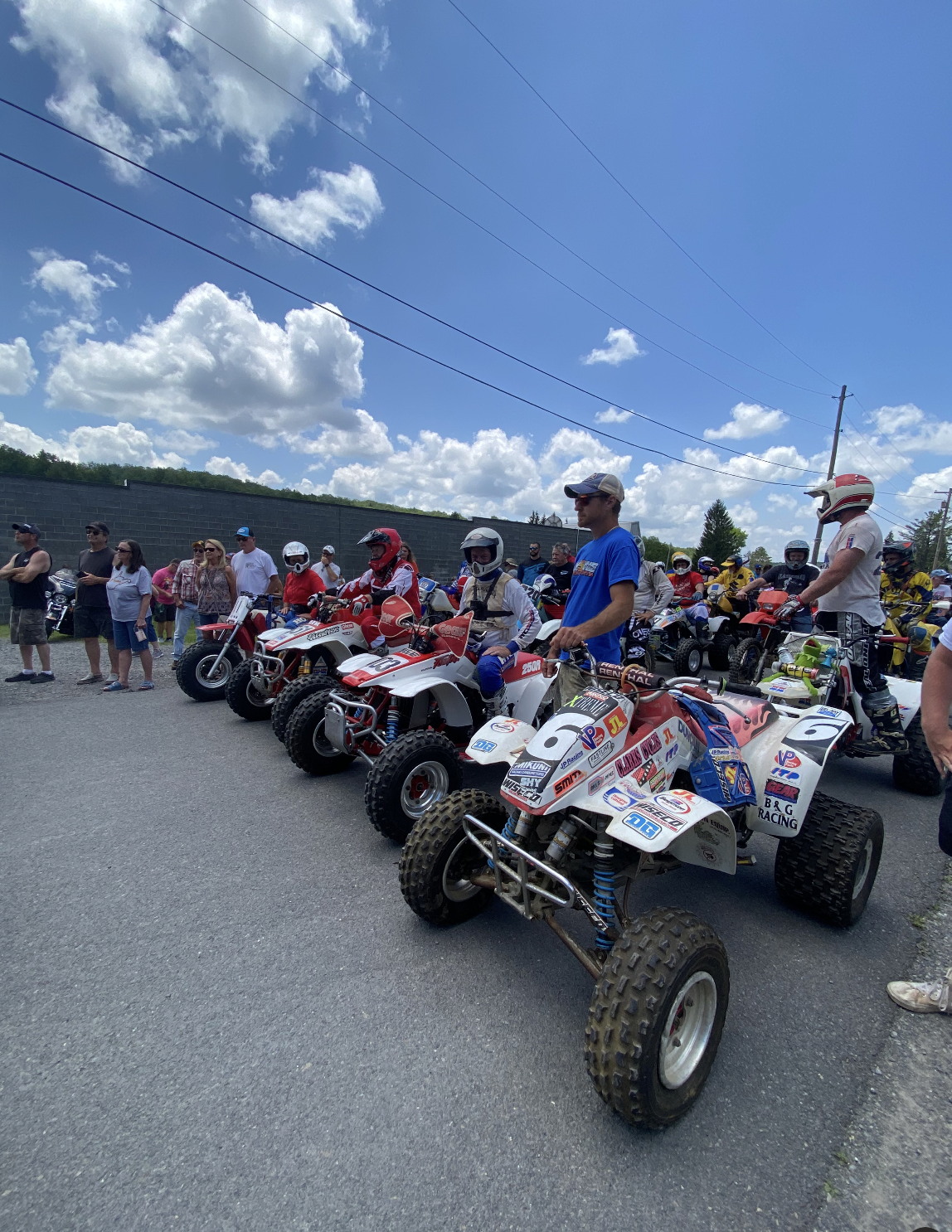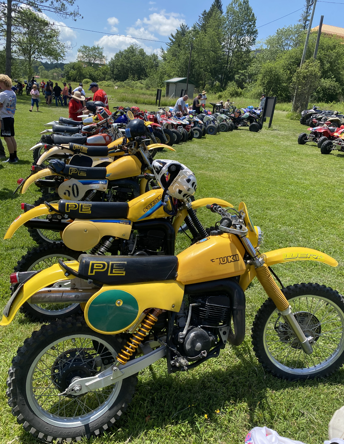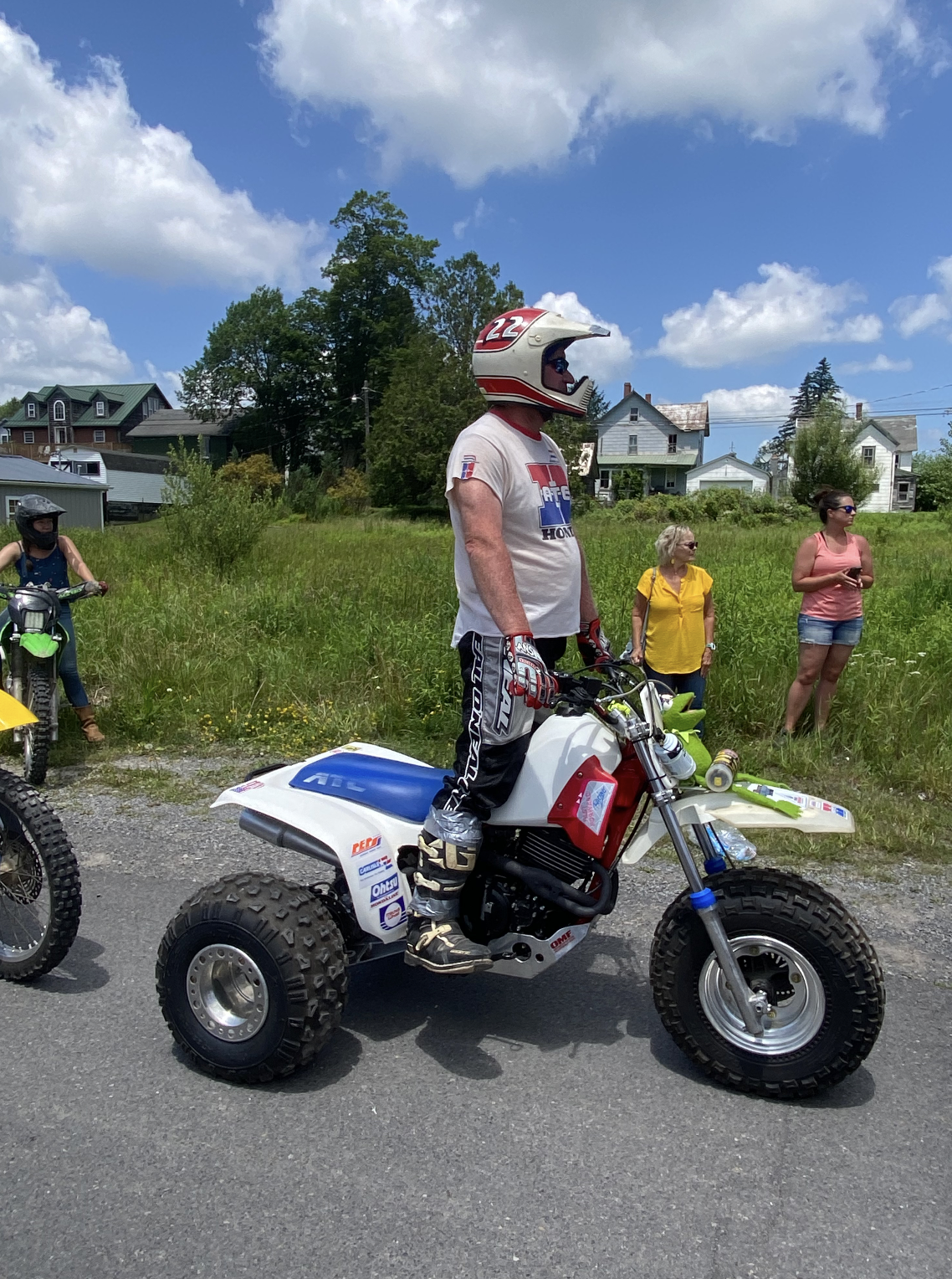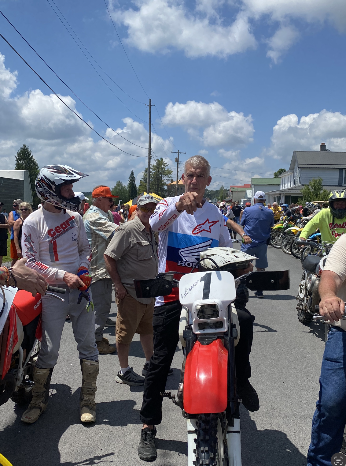 This past Monday marked the 50th anniversary of the first Blackwater 100, which was the birth of what became the Progressive Grand National Cross Country Series (GNCC) Racing. The race took place in the tiny town of Davis, West Virginia, and was based in large part on the Elsinore Grand Prix that was featured in the motorcycling documentary On Any Sunday. Now there’s a documentary in the making on the Blackwater itself, by the man behind The MX Files, Todd Huffman, and his crew. They were on hand Monday to film a Blackwater 100 reunion in Davis, which was attended by hundreds of riders and race fans who still remember the event, which ran from 1975 through 1993. The original start scene was recreated, with five different Blackwater 100 overall winners—Mark Hyde, Kevin LaVoie, Frank Gallo, Scott Summers, and my big brother Timmy Coombs—on the front row, followed by a mishmash of bikes and ATVs, some new and some very old, and even a handful of three-wheelers. It was very hot, but also a really cool event. Here are a few snaps of what it looked like to be back in Davis, West Virginia, for the Blackwater 100 reunion: