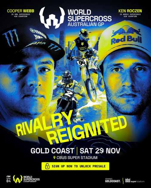 More riders will be announced soon, and fans can sign up today for exclusive early access pre-sale tickets at https://worldsupercrosschampionship.com/sign-up-gold-coast-2025/, before they officially go on sale 16th July.