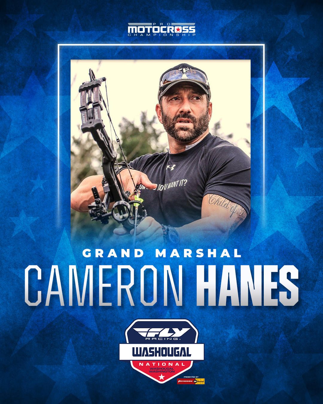 MORGANTOWN, W.Va. – MX Sports Pro Racing, Inc., in conjunction with event organizers Ryan and Rod Huffman, has announced that world renowned bowhunter, acclaimed endurance athlete, and best-selling author Cameron Hanes will serve as Grand Marshal of this Saturday’s FLY Racing Washougal National Presented by Peterson CAT, the eighth race of the 2025 Pro Motocross Championship, sanctioned by AMA Pro Racing. As Grand Marshal, Hanes will play an integral role in this year’s Military Appreciation Race, as the father of a veteran and a passionate, longtime supporter of all service men and women.