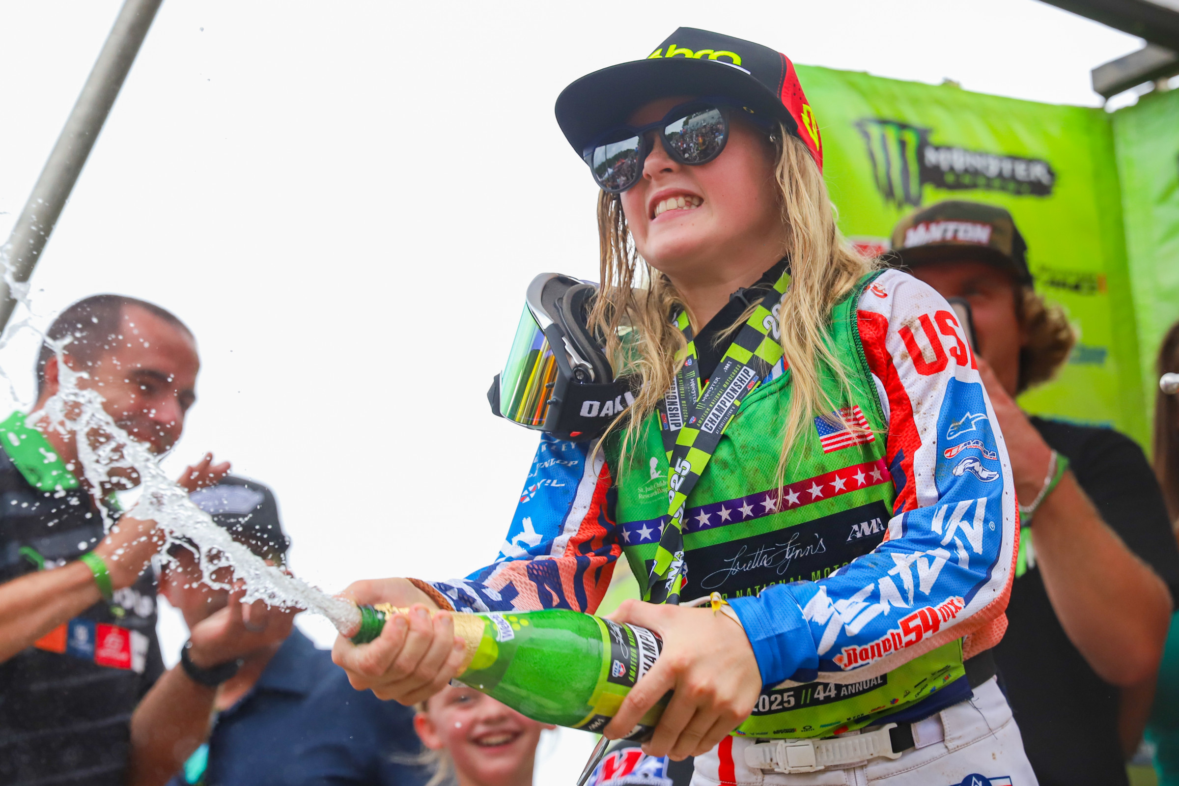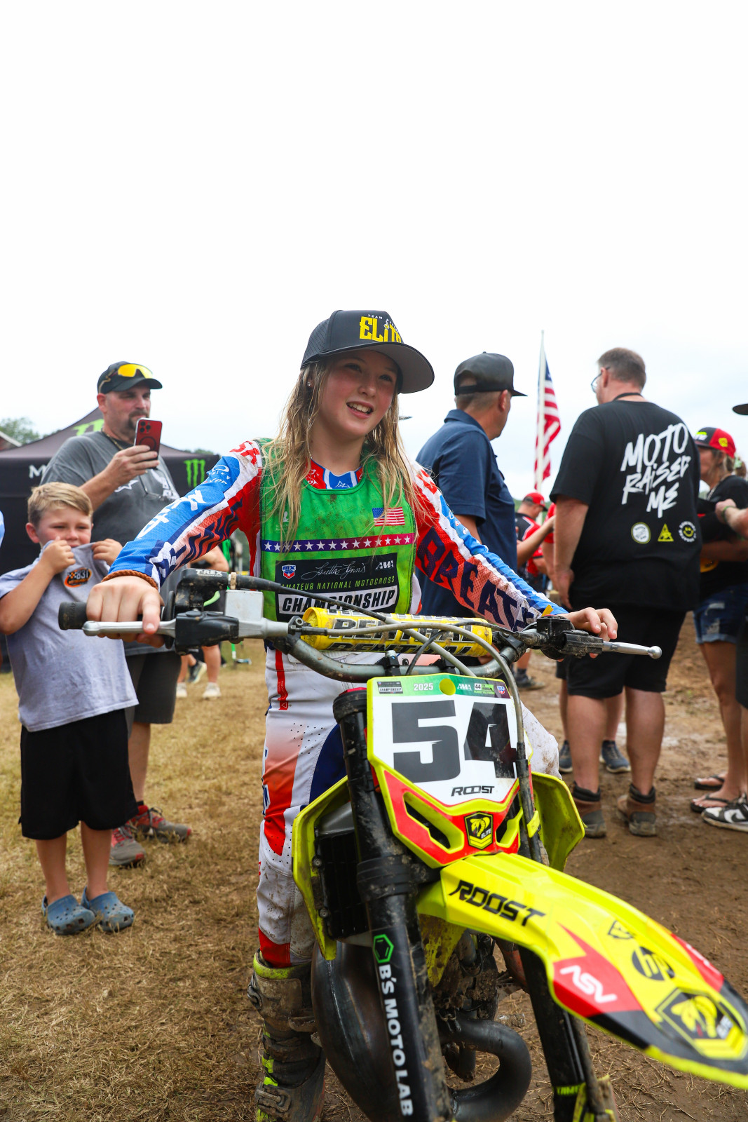 There are way too many great stories happening out there right now to list them out or talk about them in detail, including the rise of a whole pack of very fast girls that are giving the boys fits across the board. Yumena Berning came within a turn of claiming the 65cc (7-9) title, becoming the first girl to ever podium against the boys, and then Raycin Kyler did her one better, becoming the first girl to ever win an open class when she topped the 65cc (10-11) class. Lala Turner got seventh in a 250 B Limited class, the highest finish ever for a girl in one of the most competitive classes (and former SMX privateers Bobby Fitch and Ryan Duff just got to see their 15- and 14-year-old sons, McKayden Fitch and Wyatt Duff, finish 1-2 overall in that same class). The deep, deep fields of talent across the board include Deacon Denno, who so far has the fastest lap of the week at a 1:48.093. And AMA Motorcycle Hall of Famer Kevin Windham just did an exhibition race with Stevie Hoeppner, who hails from Washington and has always dreamed of competing at Loretta Lynn’s—and he got some live coaching via FaceTime with his hero, Haiden Deegan. I could go on and on, and over the weekend, we will have lots more stories and race reports and more from the biggest, most prestigious amateur motocross race in the world.
