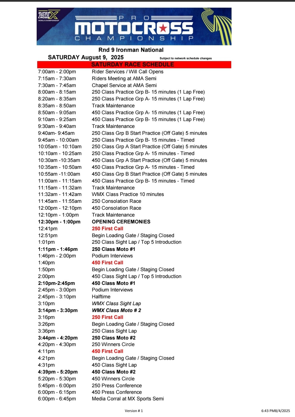 Welcome to the Race Day Feed, coming to you from Ironman Raceway in Crawfordsville, Indiana. From practice reports to the blow-by-blow from this afternoon’s points-paying motos, you’ll find it all right here on the Racer X Race Day Feed. Updates are posted in chronological order, so be sure to scroll down for the latest info. For even more updates be sure to follow us on X: @Racerxonline.