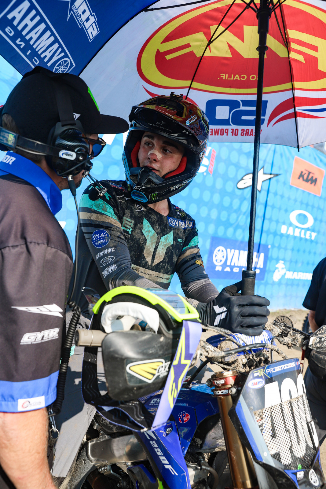 Before the race, we chatted real quick. I said, "Hey, are you nervous?" And you said, "It's just like another race." When you got out on the line, like before the first moto and the second moto, was there more nerves there? Was like, "It's hitting me finally," or was it still like, you were still pretty calm?