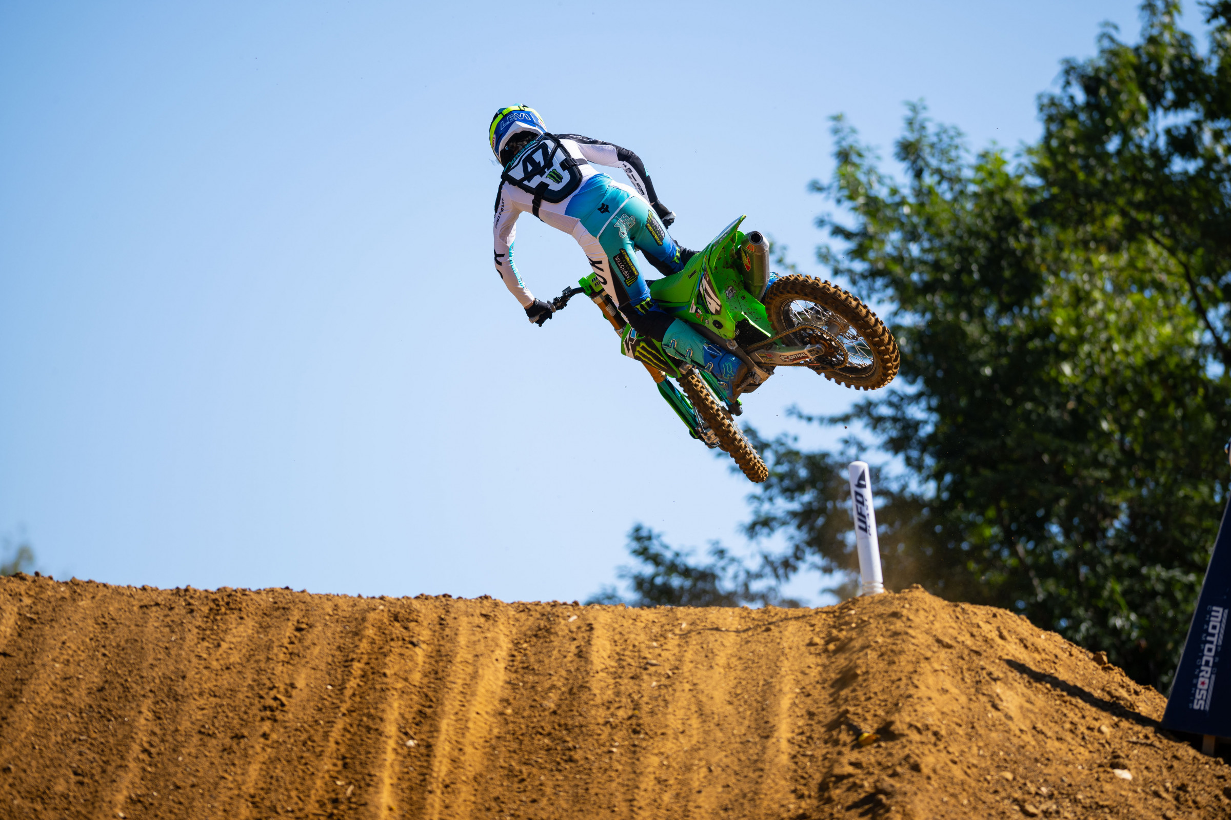 It has been an up and down summer for Monster Energy Pro Circuit Kawasaki rider Levi Kitchen. He started the season off with bad starts and a derailed chain at Fox Raceway, leading to a 16th overall. He then went on a four-race podium streak, with four third place finishes in a row. At RedBud it looked like it could be Levi’s day as he charged hard from a first lap crash to second in the first moto, but more crashes in the second moto left him off of the podium in seventh.