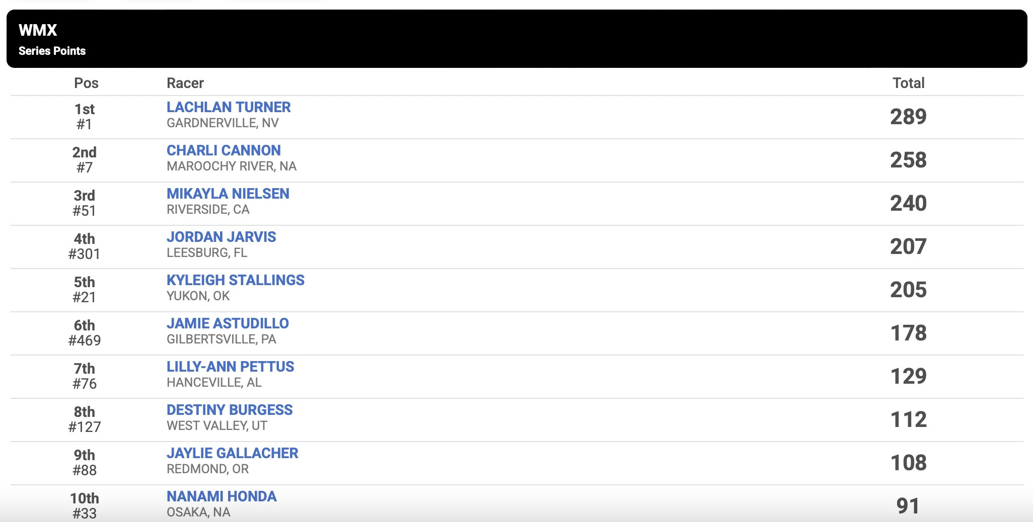 “La La has had an incredible year," said Ed Torrance the Altus Motorsports BLU CRU Yamaha Team Manager. "There’s not much more I can say about her except that she’s awesome. She is so fast, knows what she wants, and just goes after it. She trains hard, rides hard, and gets the job done. Her mom and dad are excellent people to be around. It was an incredible experience being around her at Loretta’s when she won there, and her winning the WMX Championship is just more icing on the cake. It’s been a pretty good month for the Altus Motorsports BLU CRU Yamaha team.”
